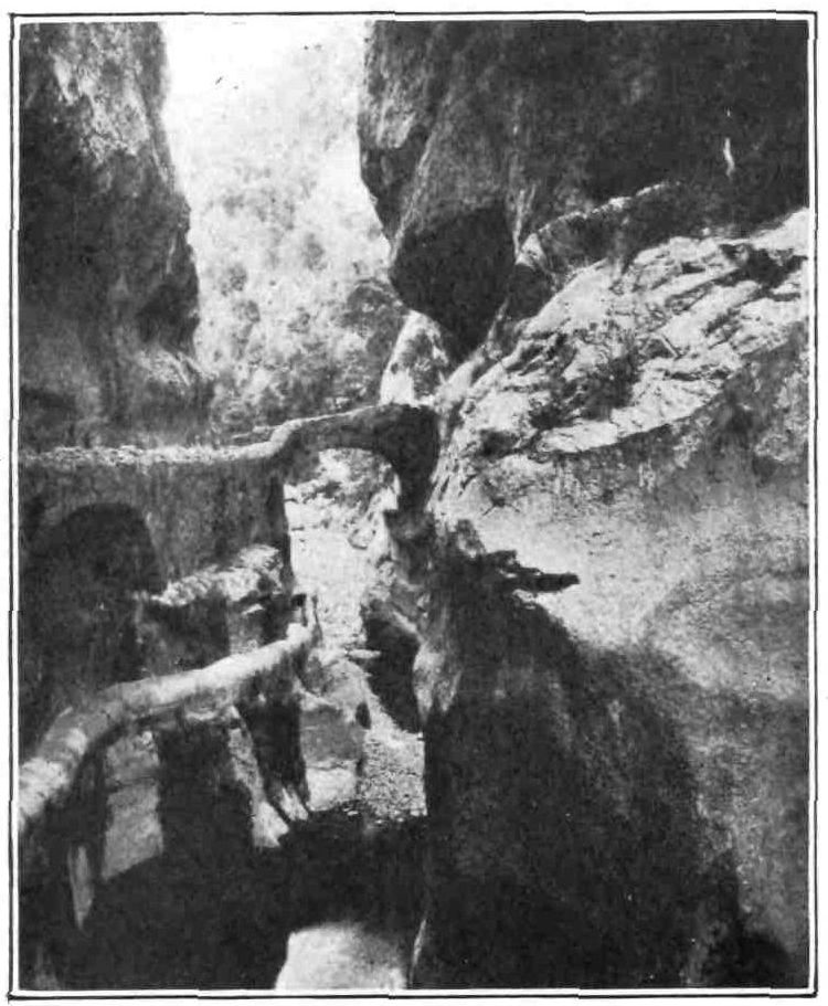 On the other side of the island are the caves of Anta, rivalling those of Han and Adelsberg. “The most fantastic part of this subterranean region,” says Mr. Vuillier, “goes by the significant name of L’Infierno. It is a nightmare in stone. Tongues of petrified flame seem to lick the walls. An enormous lion squats in one corner, staring at unhewn tombs overhung by rigid cypresses. Strange forms of antediluvian monsters lurk half-seen in the obscurity. Many of the stalactites when rapped sharply with a stick emit musical notes, some like the vibration of a harp-string, others like the deep resonance of a church bell. These are in an immense hall as vast as a cathedral nave.... In silence and{97} darkness, the forces of nature have for centuries been hewing and shaping an architecture more sublime than ever was conceived in the wildest dream of the Gothic craftsman.”