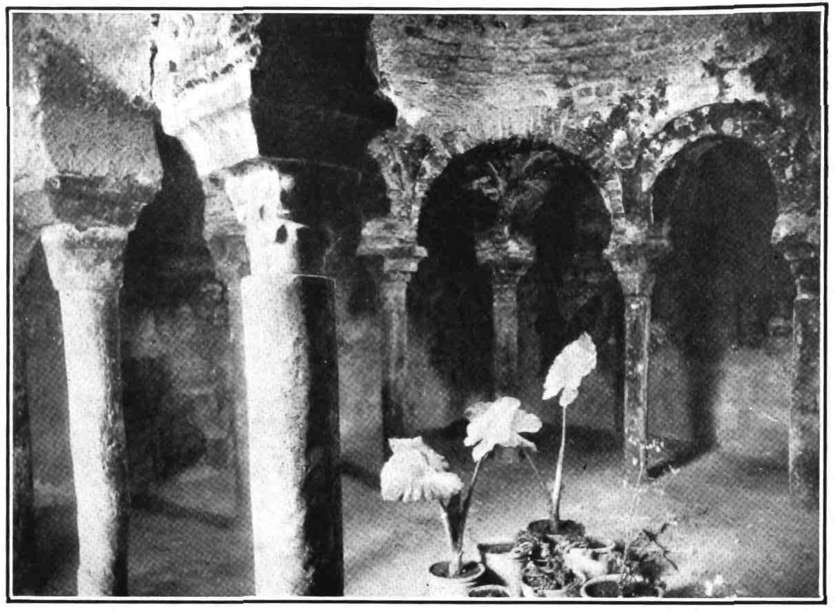 The interior of the church is now cut horizontally by a plank flooring, and no features of interest can be distinguished, except in a single apsidal chapel, which is still used as such, and where is buried a natural son of King Pedro the{46} Catholic, who died in 1254. Whitewash has obscured all the details of capitals and columns.