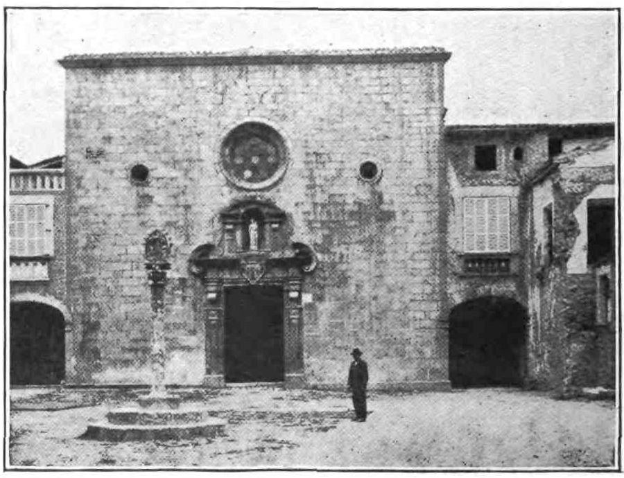 Santa Maria was consecrated in 1112 by Raimundo Guillen, Bishop of Barcelona, and{81} was served by Augustine canons down to 1592. It is contemporary with the church of San Pedro and both present an aspect of extreme antiquity accentuated by the Roman tablets and fragments incorporated with the structure. Close by are the ruins of a fortress and a chapel attributed by tradition to the Templars. On the other side of the prettily named Rio Vallparadis are to be seen the fragments of a tower and castle.