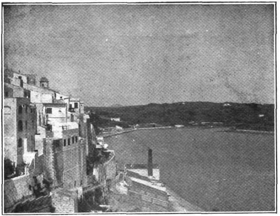 Puerto Mahon was founded, as we have said, by the Carthaginians, and was appropriately enough occupied by us, the Carthaginians of later days. Its harbour is one of the best in the Mediterranean, and is very strongly fortified. Except for the forts, the town contains no public monuments of interest. The streets are very clean and rather quiet, and you remark the absence of the running water in the gutters characteristic of so many European towns. The streets are well paved, often with tombstones from the English cemetery; the dustman goes his rounds as he does in London, and many of the houses have English windows. The domestic life is held in high honour at Mahon, and the chief occupation and delight of the women is cleaning their houses. “It is an amusing spectacle” says M. Vuillier, “to see them armed with brooms of dwarf palm and immense pails of lime-water, gossiping along the walls from early morning, while they scrub and wash as if their lives depended upon it, fastening their brooms to long poles the better to reach the higher parts of the wall. Should a death occur in a house the walls are not whitened for a week, a fortnight or{99} even a month, according to the closeness of the relationship or the degree of grief felt for the deceased. In rare cases the walls are not touched for six months.” The traveller comments on the absence of the tribe of unwelcome bedfellows, so persistent in their attentions in other parts of Spain.