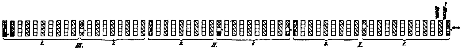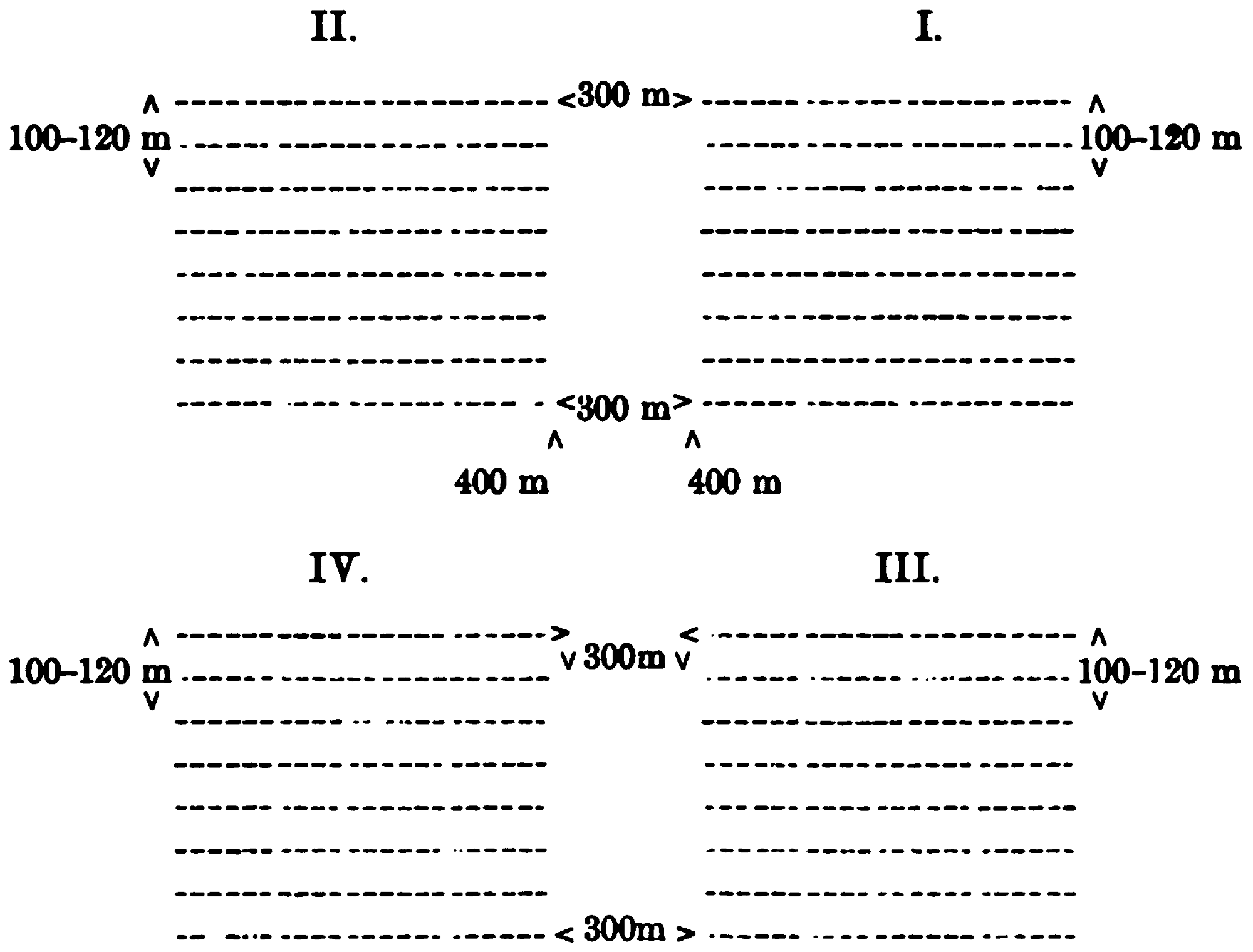 On the battlefield, ammunition wagons, unless they have been emptied, follow the movements of the several companies and take up a position under cover, indicated by the wagonmaster,[478] as close as possible to the firing line—never more than 800 m. in rear of it. In urgent cases, this must be done without regard to losses. The firing line is supplied with ammunition, when practicable, by the reinforcements sent forward. When the firing line is about to run short of ammunition, this fact is communicated to the troops in rear by repeatedly making the signal “m”. This signal, when made to the front by the troops in rear, signifies, “ammunition is coming up at once.”