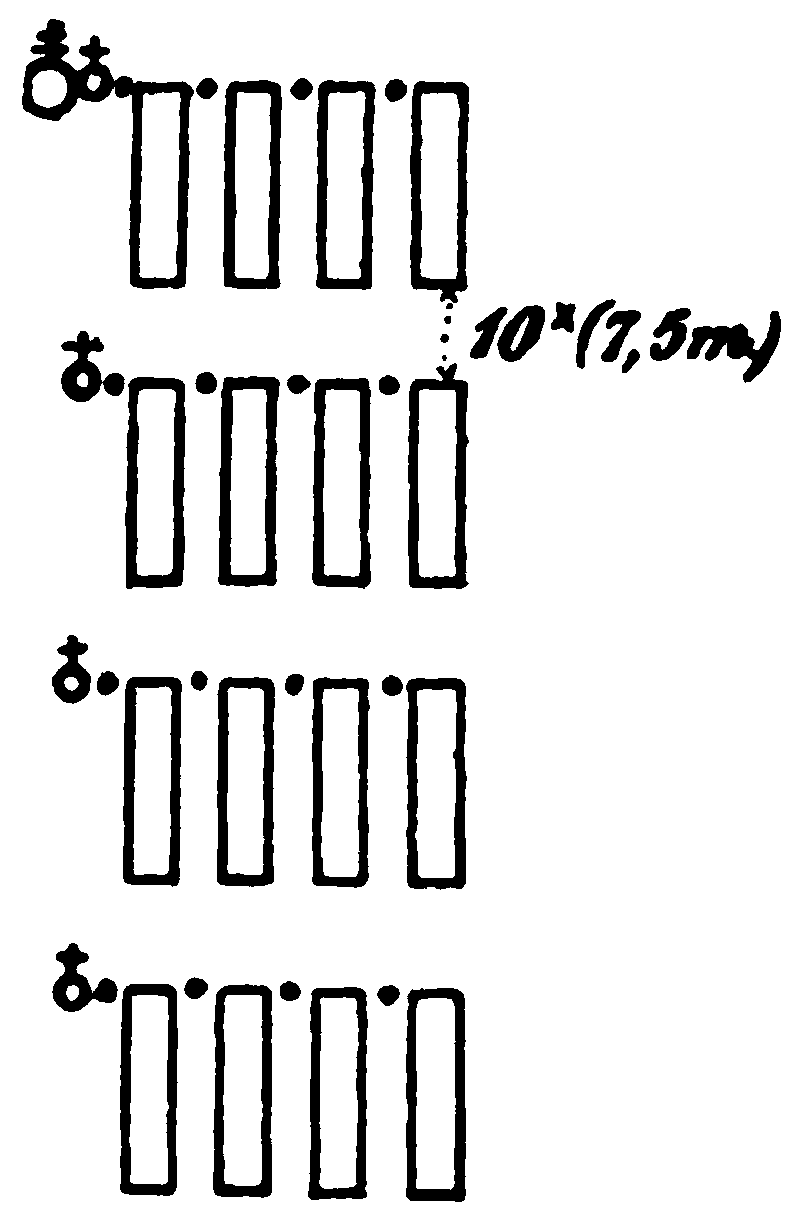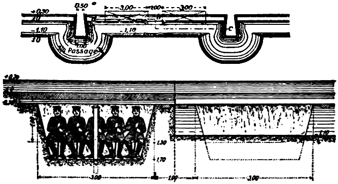 [518] In each battalion, the ammunition wagon of the 2nd company carries 108 explosive cartridges, weighing 200 g. each, and that of the 3rd company carries 48 fuzes.