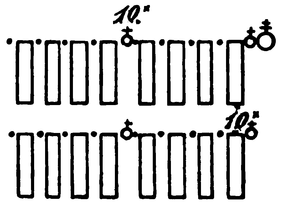 Elements in dotted lines are not present as such in the text, but have been transcribed from the accompanying illustration for the sake of clarity.