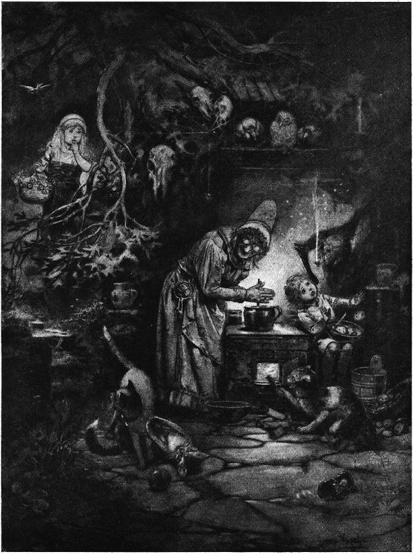 bekennt er am Schluß des Geleitgedichtes zu seinem ergreifend schönen Heimatwaldbild. Tagelang und nächtelang ist er als Jäger durch den Krebeser Wald gestreift und durch die Wälder der Ruderitzberge und der Plattenberge, mit der Donnerbüchse über der Schulter. Nur selten hat er’s über sich vermocht, ein Wild des Waldes mit seiner Flinte wirklich tot zu schießen. Mit seinem Stift, dem treffsicheren, hat er die Tiere belauscht und im Skizzenbuch als Beute heimgebracht: den leichtflüchtigen Hasen, den listigen Fuchs, das keusche Reh (des Künstlers Lieblingstiergestalt), die gurrenden Holztauben, das übermütige Eichkätzchen und die nachtschwarzen Unglücksraben Wotans. (Hermann Vogel als Gestalter der heimischen Tierwelt ist ein besonders reizvolles Kapitel für sich allein.) Aber über die oft verblüffende Wirklichkeitstreue hinaus drängte es den Künstler, den heimatlichen Wald romantisch zu beleben, »märchenhaft und wunderbar«, mit Gnomen und Zwergen und Elfen und Nixen und Drachen und Hexen und Riesen. Die Bäume bekommen Gesichter, Arme und Hände. Hinter den Felsen lauern spukhafte Ungeheuer. Hänsel und Gretel, zwei vogtländische Bauerskinder, schreiten herzklopfend durch den verzauberten, nächtlichen Vogtlandwald. Hermann Vogel ist einer der bedeutendsten Märchenwaldmaler des deutschen Volkes. (Wer sich jemals in seine Waldbilder zu den Volksmärchen der Brüder Grimm und seine beiden Waldbildmappen vertieft, wird es bestätigt finden.)