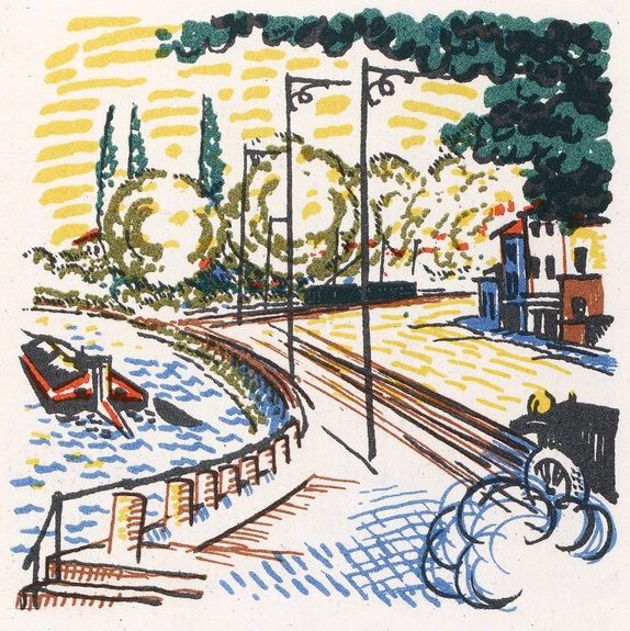 Nous traversions à toute allure cette ceinture vague de Paris sur laquelle nulle saison ne prend. Sur les terrains de sport, des clubmen en veston et en culottes blanches s’envoyaient du pied ou des têtes un ballon tout rond, les bras immobiles, comme si la paralysie ou l’imperfection commençait son ravage aux portes mêmes de Paris. De petits tramways jaunes que nous rattrapions glissaient à rebours dans notre âme, la râpant de tous leurs visages, comme de leur barbe ces épis qu’on glisse dans votre manche. Nous longions des rangées de petits chalets neufs qui avaient aux fenêtres leurs premiers rideaux, sur le perron la première femme qui les habita. Le chien était plus vieux que la maison, les oiseaux que les arbres. Une église barrait la route. Avisés, nous contournions l’église. Une colline se dressait, s’enflait ; nous la gravissions si vite que le temps lui manquait de devenir montagne. Mais nous laissions à loisir se courber, fléchir, la vallée où maintenant se retrouvaient, se côtoyaient, la route, la voie ferrée et la rivière. Elles s’entendaient, dociles, pour passer toutes trois sur le même pont, paresseuses. Elles s’entrecroisaient. Eclatantes, transparentes, elles écartaient dédaigneusement cette longue allée de tilleuls qui amenait vers Paris, par un aqueduc d’ombre, la fraîcheur de la forêt. Les trains sifflaient aux chalands : — vous allez moins vite, mais plus sûrement. — vous êtes le chemin qui marche, disait la route à la rivière. La rivière répondait : — Nous marchons si peu, si peu ! Nous sommes surtout profonde, nous pensons. Voyez sur notre berge cet homme grave, avec ce grand chapeau de paille, ce bambou. Gloire aux penseurs !