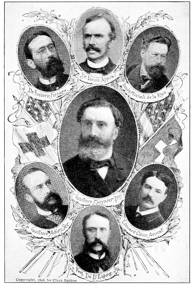 At the great international sittings of the Red Cross in Geneva, in Carlsruhe, in Vienna, in St. Petersburg,—Clara Barton, the only woman officially representing any government among the representatives of forty nations. As the unpretentious woman of five feet three comes into the hall, the great men of the earth rise to their feet,—eyes eager, handkerchiefs in air, then huzzas that echo the heart throbs of a world humanity greet the ear and touch the heart of the “lonesomest-lone-woman” as she walks down the aisle of the auditorium to take her seat among the great world-humanitarians. Small in stature but great in deeds, a galaxy of deeds!