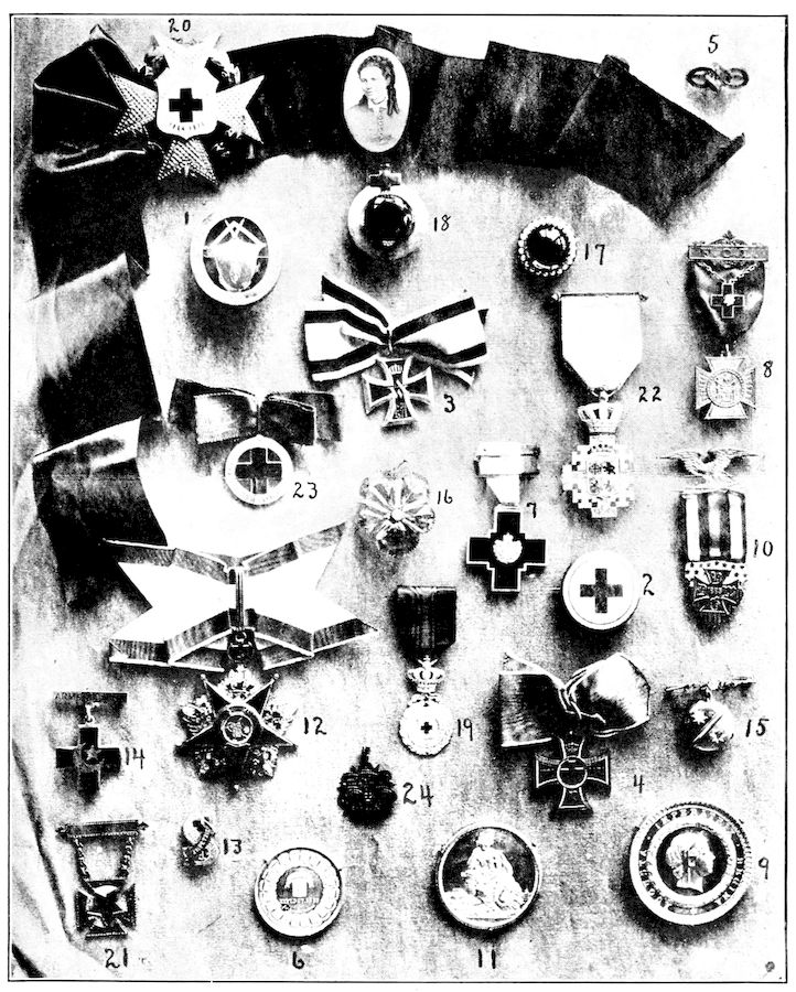 435From the days of Benjamin Franklin honors in Europe have been showered upon the dignity of the American office, on two ex-Presidents in private life, but high and above office-holders and ex-Presidents in the list of royal honors received stands Clara Barton. Her royal receptions, her royal decorations in all history have not been equaled. Czar and Czarina, Emperor and Empress, King and Queen, Prince and Princess, Duke and Duchess, all royalty so poor as to do honor to the richest in world-service. Paris, Madrid, Berlin, Geneva, Carlsruhe, Vienna, Baden-Baden, St. Petersburg, Constantinople, Santiago,—no city too great, no city too unchristian, to open her gates to welcome Clara Barton.