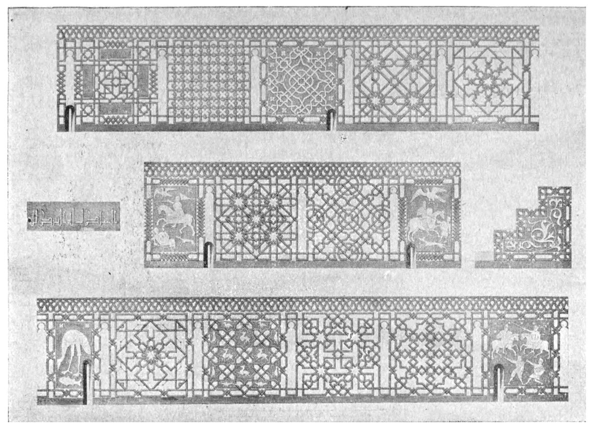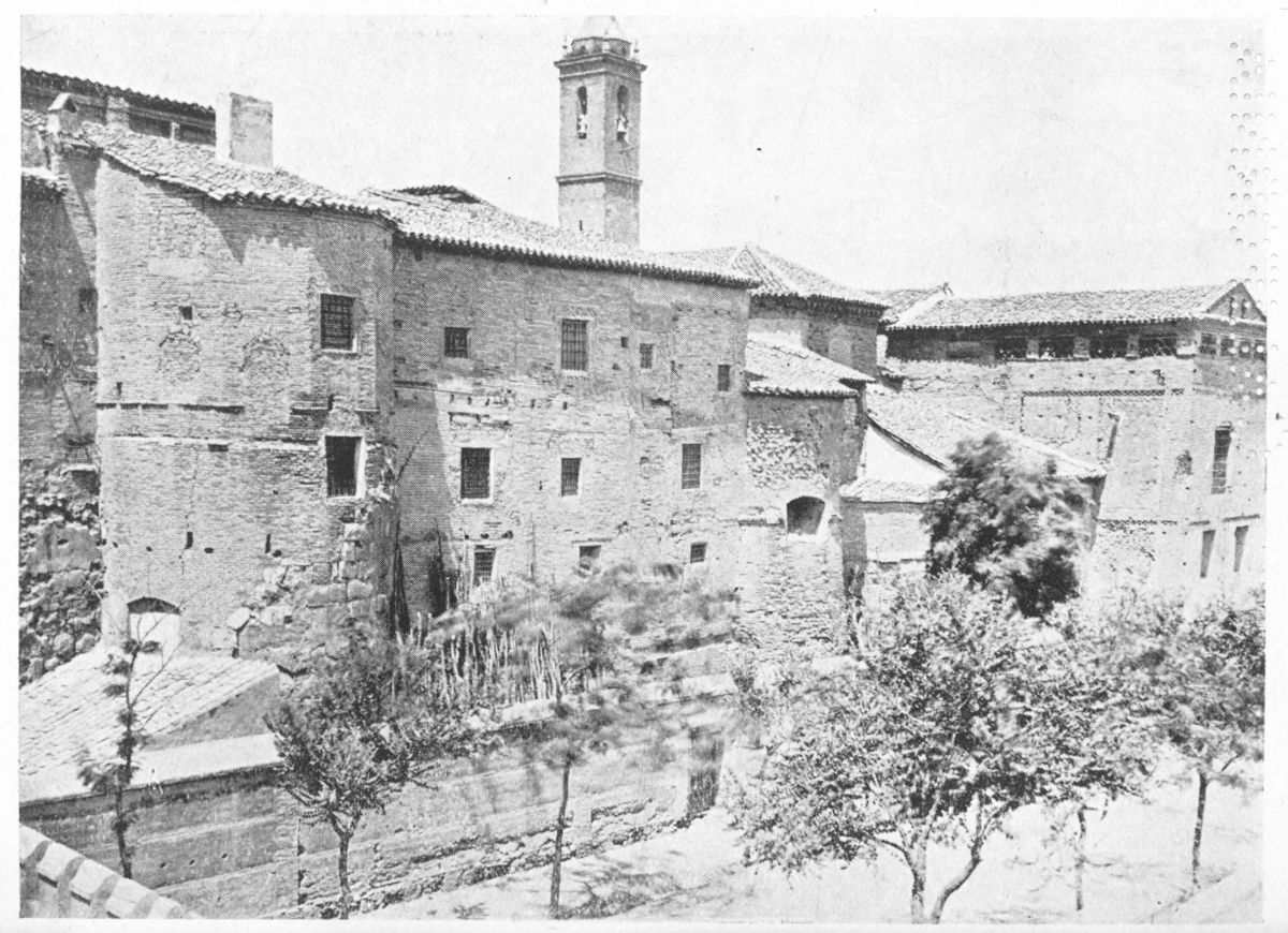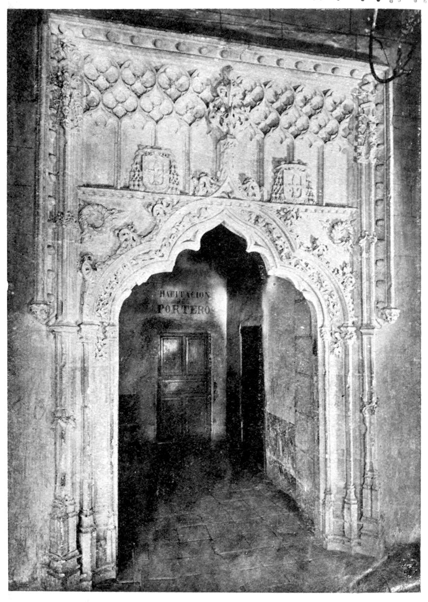 The name seems to be derived from Jaffir, a not uncommon name among the Moors, and borne perhaps by one of the Beni Hud dynasty, for whom the building served as a palace. At the conquest in 1118 it was allotted by Alfonso the Battler to the Benedictine order. In the fourteenth century it again became the residence of royalty, and doubtless was entirely transformed and repaired. It was the scene of great splendour at the coronation of King Martin, and of several of his successors. To-day it presents a sad and dilapidated appearance. The imposing staircase, decorated with fine stucco work, is the creation of the Catholic sovereigns, who seem to have had some idea of reconstituting the past glories of the palace in true Moorish style. The ceilings of some of the chambers are in the artesonado style—the work of fifteenth-century artificers. The most beautiful is to be seen in the Salon de la Alcoba, where was born in 1271 the sainted Princess Isabel, afterwards Queen of Portugal,{146} and persistently confounded by English writers with St. Elizabeth of Hungary. Everywhere among the decorations appear the devices and mottoes of Ferdinand and Isabel.
