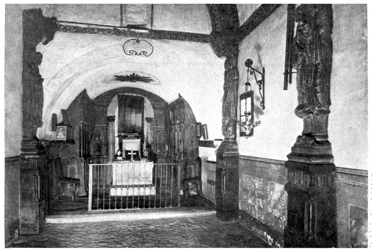 Over the chancel is the lantern, octagonal in plan, which replaced an earlier one in the first quarter of the sixteenth century. The work was undertaken by Enrique de Egas, only at the{150} express command of the king. The lower part is adorned with statues in niches, and with the canting arms (the half-moon) of the family of Archbishop de Luna.