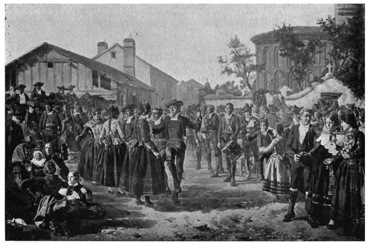 A DANCE IN THE PLAZA DEL PUEBLO DE NIEVA, SEGOVIA. BY A. GARCIA MENCIA. (No. 181, EXHIBITION OF 1871)