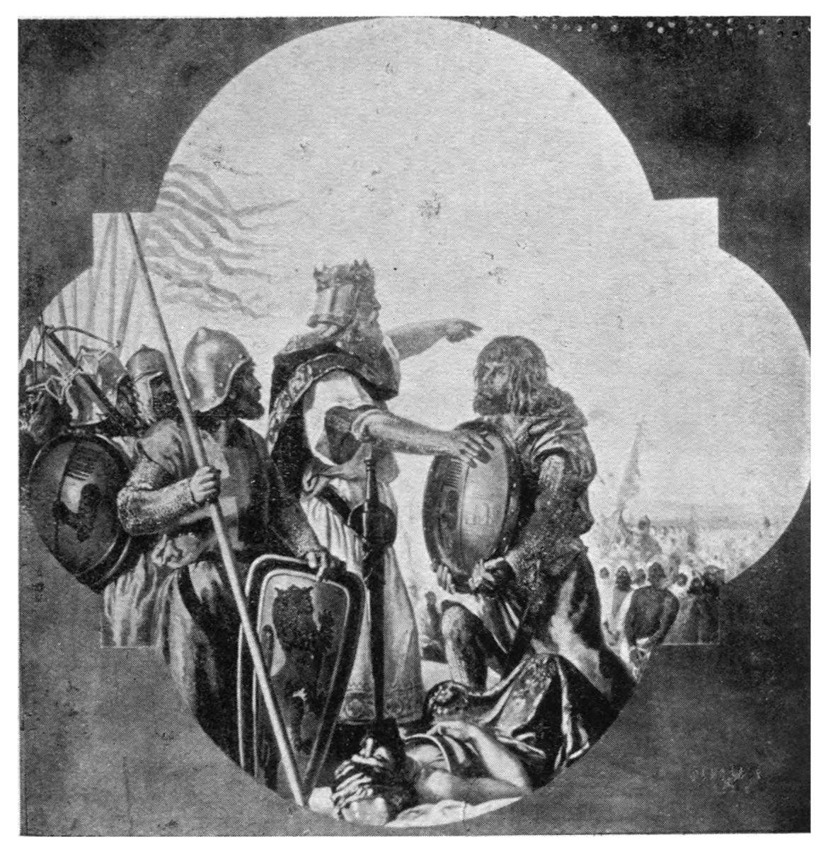 QUEEN URRACA AND ARIAS GONZALO. DECORATIVE PAINTING IN THE TOWN HALL. BY RAMON PEDRO Y PEDRET