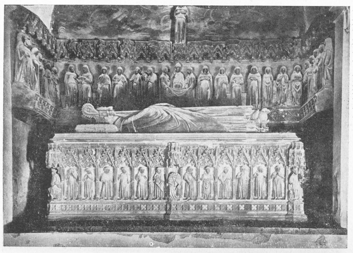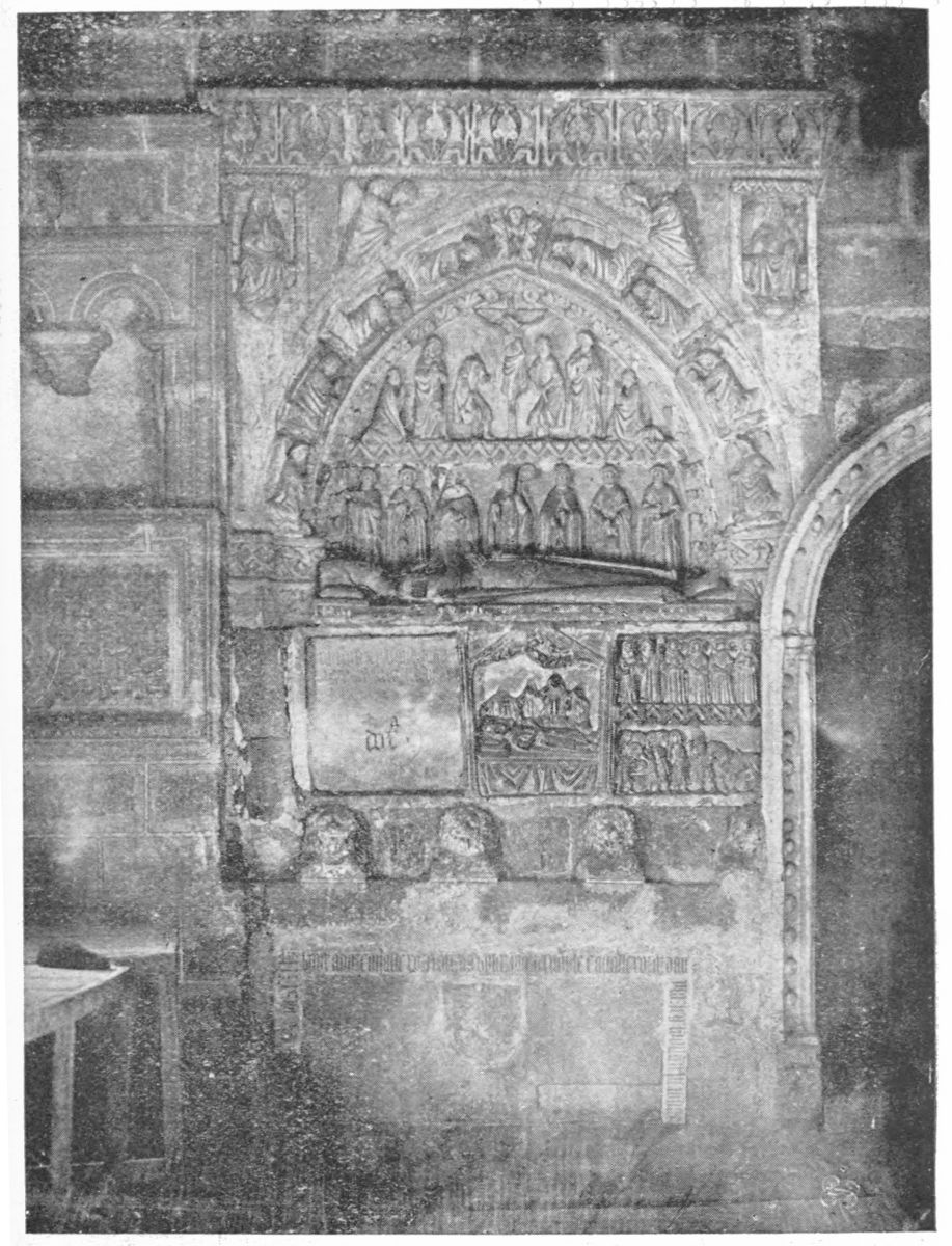 The cloister, begun in the fourteenth and finished in the fifteenth century, is in good Gothic style. The pointed arches looking on the court are divided by four or five slender shafts, which support elegant tracery. Among the statues that of Alfonso XI. Is the best preserved. The capitals and corbels are curiously and richly carved with such subjects as King Favila hunting the bear, the duel of Froila, and what Mr. O’Shea very rightly calls ‘a series of comical pictorial reviews of the times.’ There are many tombs in the cloister, belonging to various epochs, mostly earlier than the fourteenth century. They are of all styles, but Don J. M. Quadrado points out that the epitaphs are almost uniform in style. The famous Bishop Pelayo’s tomb (died 1153) is here.