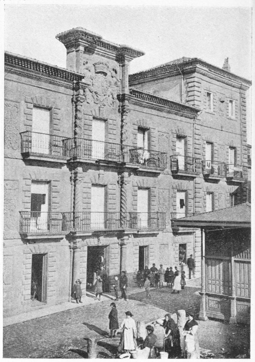 On the other side of the Plazuela is the palace built by Lerma on the site of the house where Don Carlos was born, and sold by him to Philip III. for thirty-seven million maravedis. The façade is simple, not undignified, and adorned with the royal arms over the doorway. The patio, or inner quadrangle, is decorated with busts of the Roman emperors and the arms of the old provinces of Spain. Here, says Ford, Napoleon took up his quarters on that memorable visit to Spain which at once altered the complexion of affairs. The building is now the Audiencia, or Law Court.