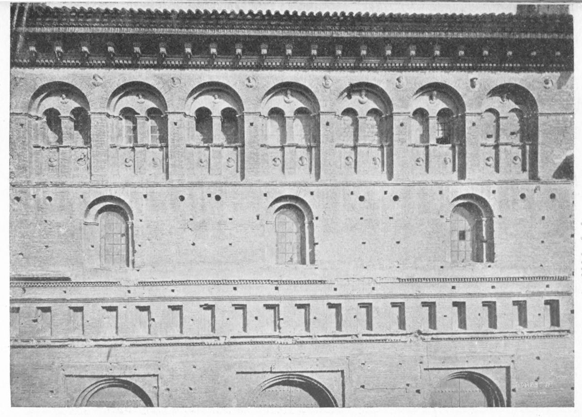 On the north this venerable church is flanked by a very beautiful Romanesque cloister of fourteen semicircular arches in three bays. The shafts, says Street, are moulded and wrought in imitation of the coupled columns of early Italian artists. This cloister, together with the steeple, makes up the most picturesque group of buildings in Valladolid, and is well worth careful preservation, if not restoration.