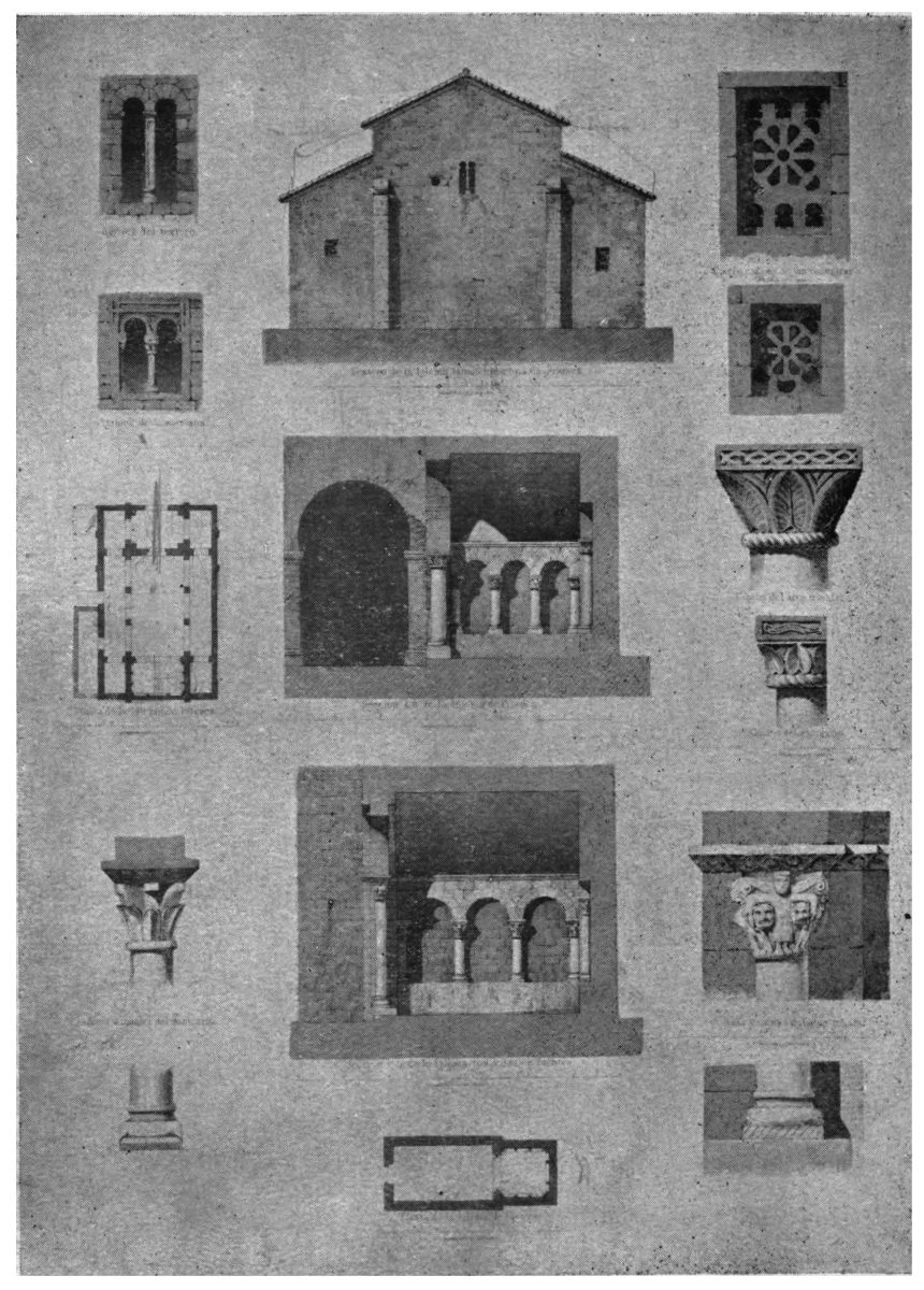 PLAN, PRINCIPAL ENTRANCE, AND DETAILS OF THE CHURCH OF SAN JUAN DE AMANDI (CONCEJO DE VILLAVICIOSA)