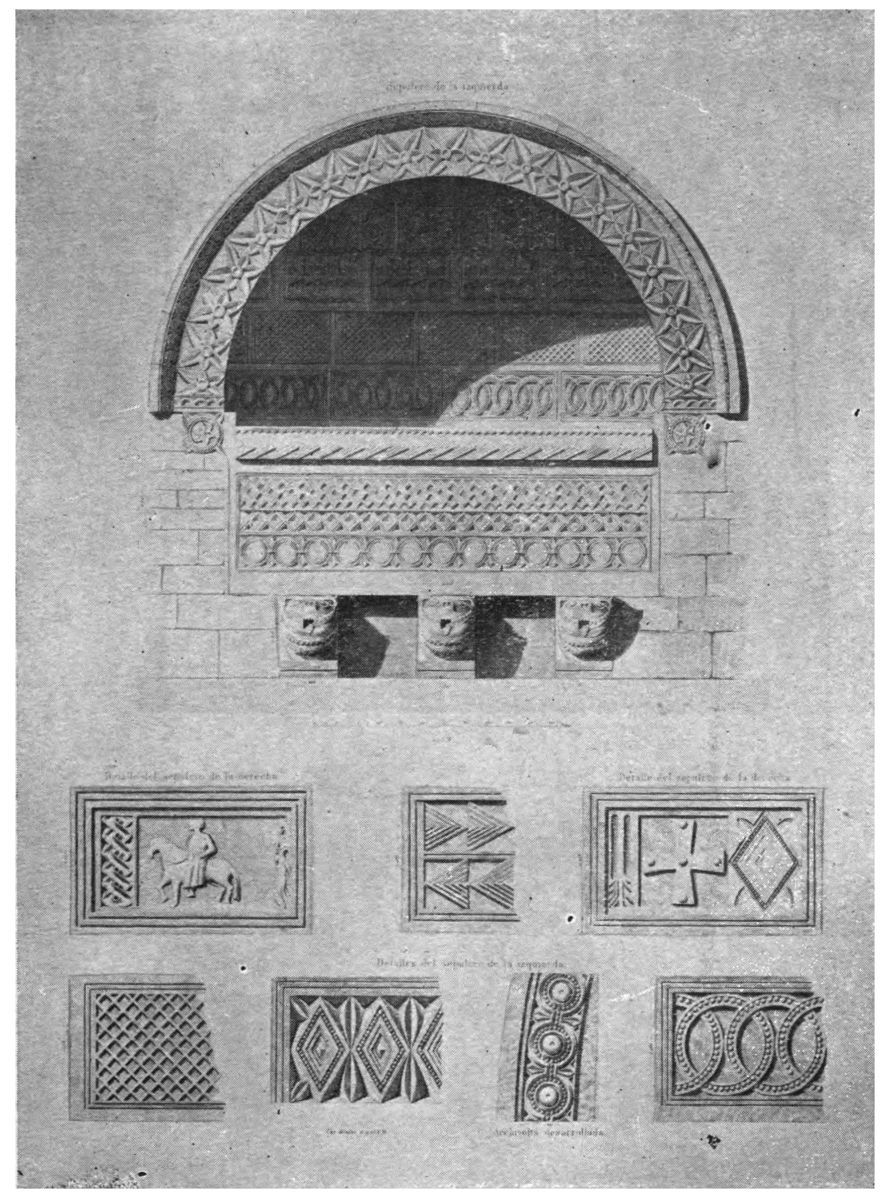 DETAILS OF SEPULCHRES IN THE CLOISTERS OF THE COLLEGIATE CHURCH OF COVADONGA (CONCEJO DE CANGAS DE ONIS)