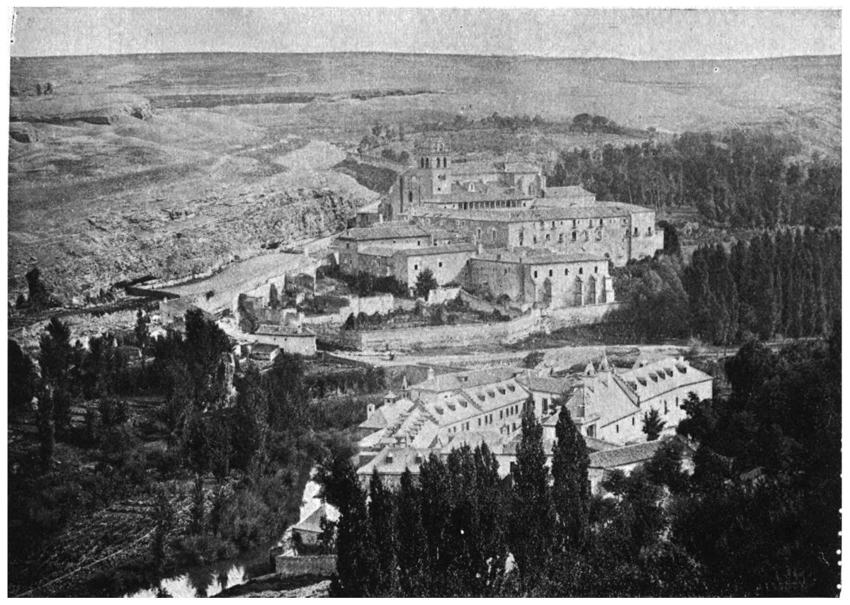 The secularised church and convent of San Benito on the west side of the town were founded by Juan I. on the site of the old Alcazar, in reparation for a Benedictine house destroyed by his father. The actual fabric was commenced in 1453, and hardly completed three centuries later. The plan of the church reminds one of Santa Maria la Antigua. The interior is lofty and impressive. There are two choirs—one in the western gallery, and the other, as usual in Spain, in the middle of the church, and enclosed by brick walls. The church was very strongly built, and is, appropriately enough, occupied by the military.
