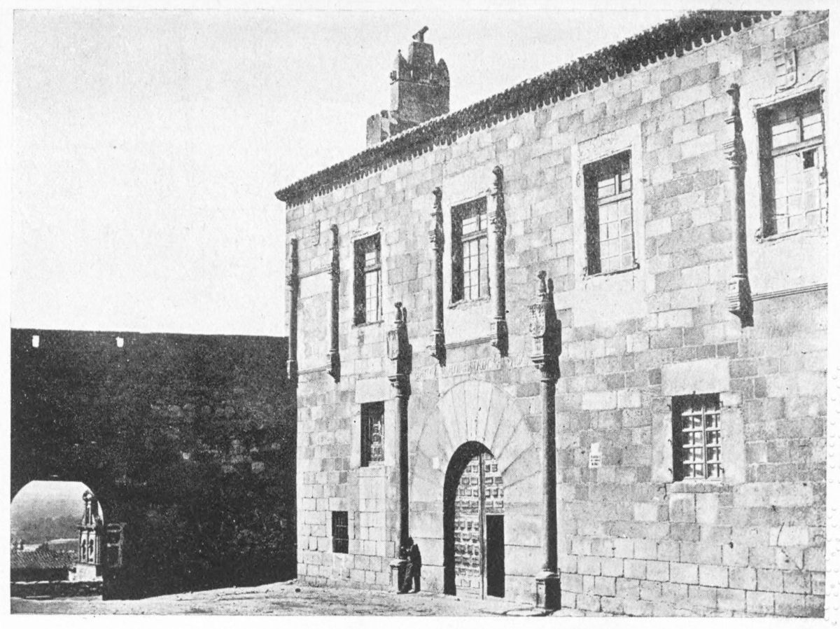 On the other side of the Plazuela is the palace built by Lerma on the site of the house where Don Carlos was born, and sold by him to Philip III. for thirty-seven million maravedis. The façade is simple, not undignified, and adorned with the royal arms over the doorway. The patio, or inner quadrangle, is decorated with busts of the Roman emperors and the arms of the old provinces of Spain. Here, says Ford, Napoleon took up his quarters on that memorable visit to Spain which at once altered the complexion of affairs. The building is now the Audiencia, or Law Court.