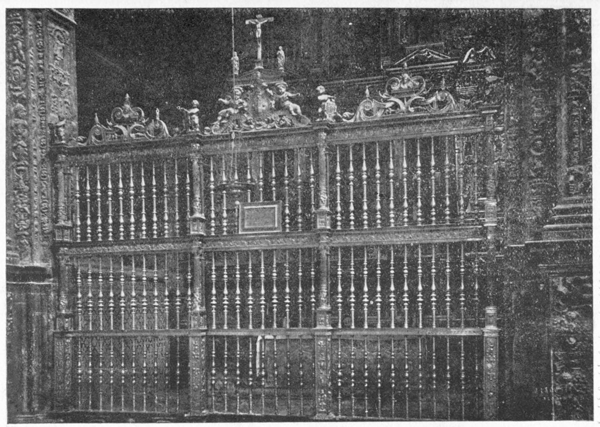 The interior exhibits an interesting blending of the Romanesque and Gothic styles. On the outer door, defaced by a modern portico, formerly hung the knockers wrenched off the gates of the Mezquita at Cordova by the first Count Armengol. The mouldings of the arch are Romanesque, but Gothic is the beautiful groining of the interior. At the west end of the church is a gallery for the choir, with stalls and organ. In the days when this was built churches were built for the laity, and the clergy did not insist on taking up the greater part of the nave, as they did in after years. The chapel of the Counts of Cancelada contains some good paintings. The most valu{26}able accessory is, however, the reredos by the celebrated Juan de Juni, begun in 1551 and finished in 1557. The work betrays an extraordinary degree of skill and vigour, but it is over-elaborate and in parts fantastic.