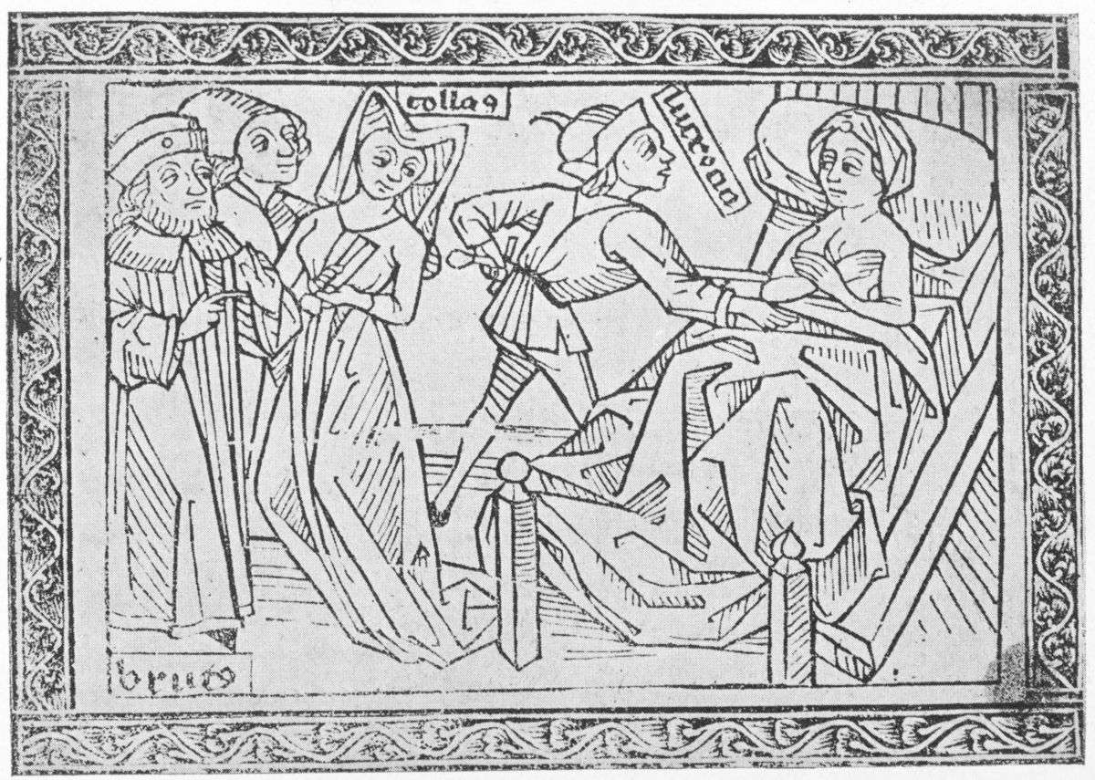 THE STORY OF LUCRETIA. A PLATE FROM THE WORK ENTITLED “MUJERES ILUSTRES” (FAMOUS WOMEN) BY BOCCACCIO. PRINTED AT ZARAGOZA BY PABLO HURUS IN 1495 (NATIONAL LIBRARY)