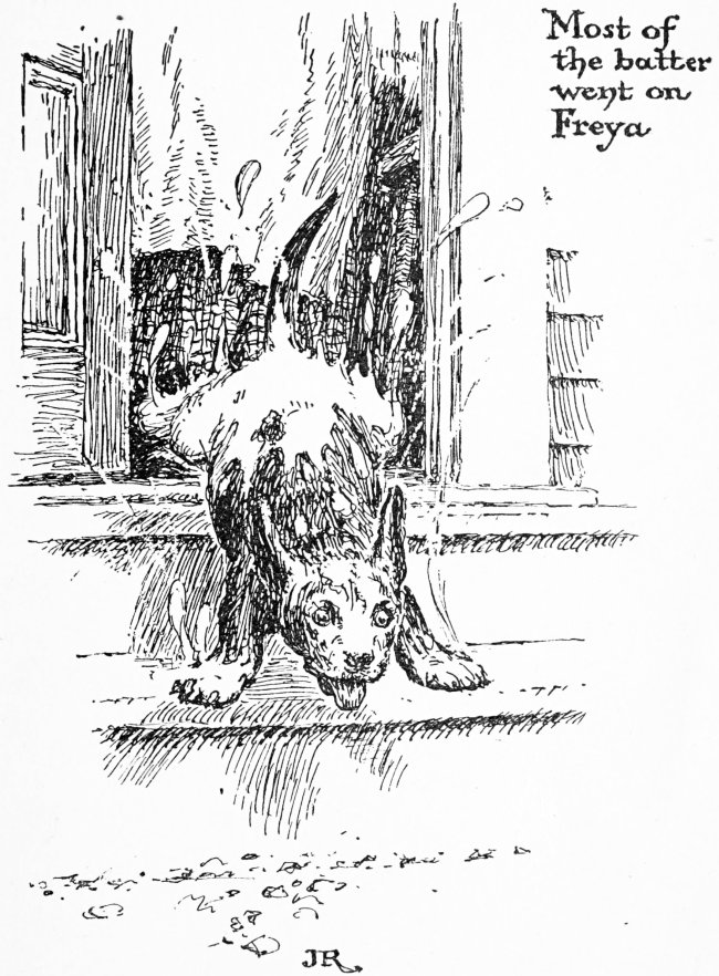 Freya came up and looked at me in a way which said: “There! Now you are in for it! And I’m glad, because you were selfish and wouldn’t give me any.” And then she trotted over to the Mistress with her tail curled up very proudly as much as to say: “See what a good dog I am! I haven’t lost my collar!”