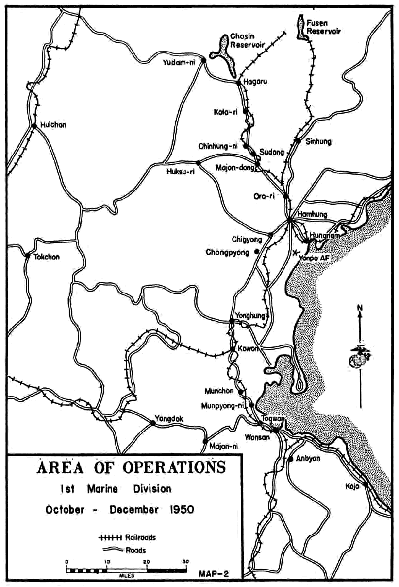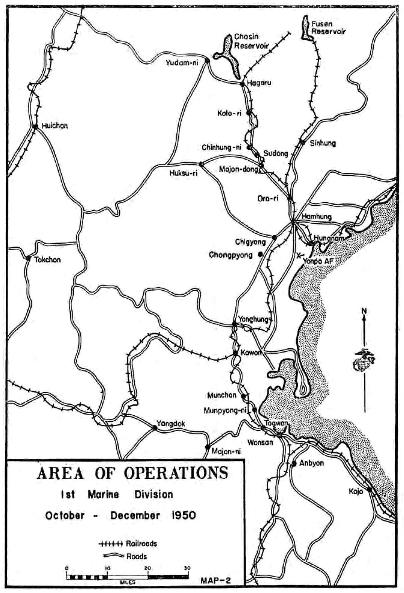 | 2 | Area of Operations, 1st Marine Division, October-December 1950 | 12, 122 |
