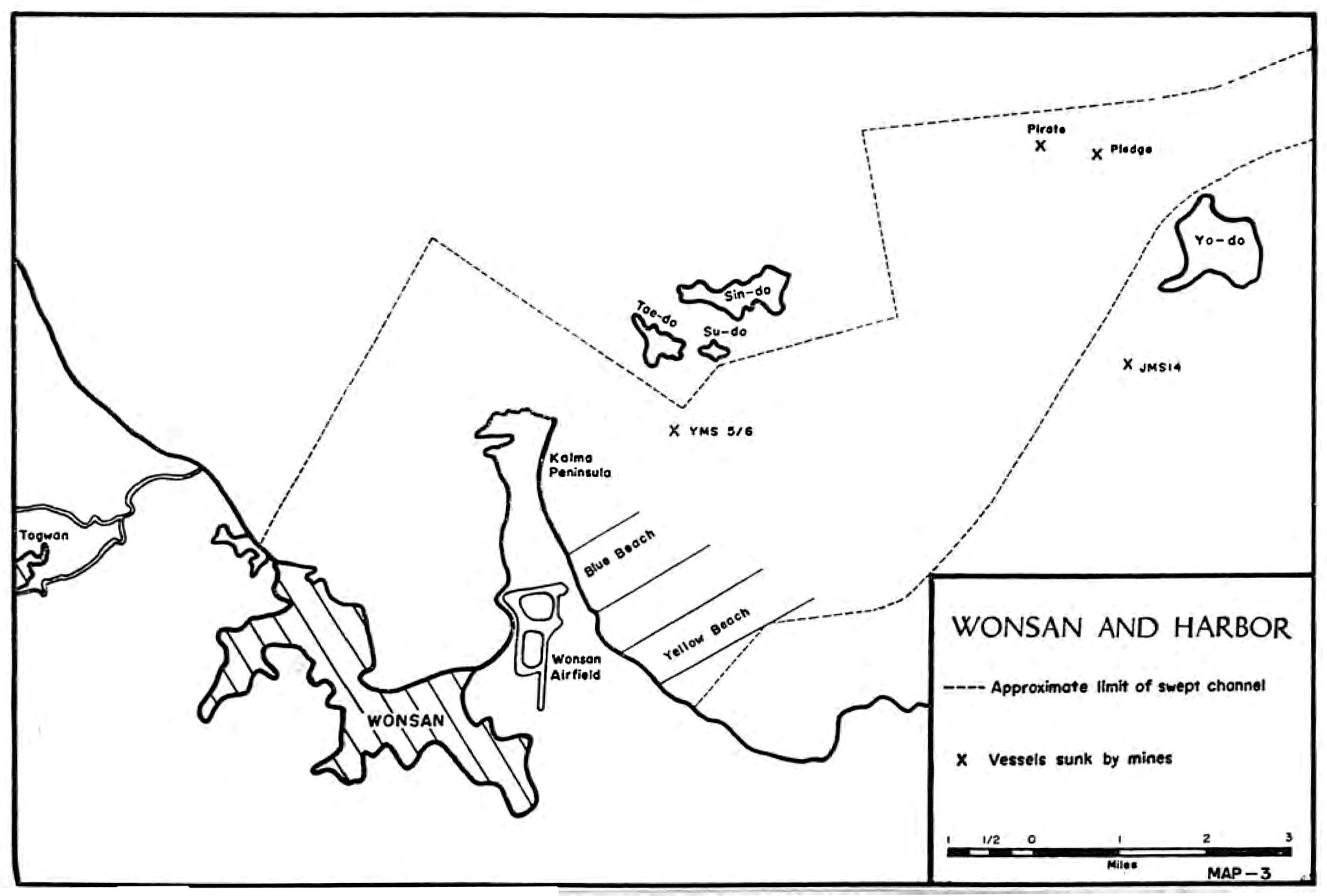 | ROK Army Captures Wonsan—Marine Loading and Embarkation—Two Weeks of Mine Sweeping—Operation Yo-Yo—Marine Air First at Objective—MacArthur Orders Advance to Border—Landing of 1st Marine Division | ||