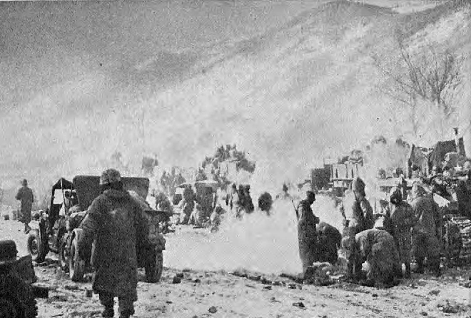 When the danger was greatest, the 1st Marine Division might have accepted an opportunity for air evacuation of troops after the destruction of weapons and supplies to keep them from falling into the enemy’s hands. But there was never a moment’s hesitation. The decision of the commander and the determination of all hands to come out fighting with all essential equipment were in keeping with the highest traditions of the United States Marine Corps.