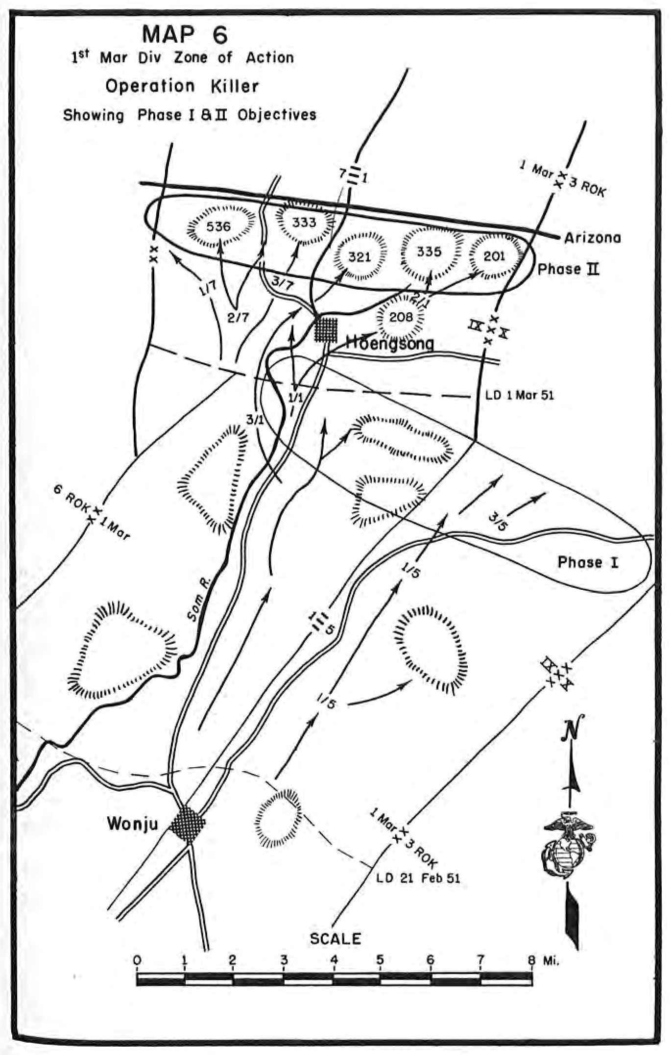 | The Move to the Chungju Area—Marine Planes in Action—Planning for the New Operation—The Jump-Off on 21 February—Stiffening of Chinese Resistance—General Smith in Command of IX Corps—The Advance to Phase Line ARIZONA—JOC Air Control System Criticised | ||