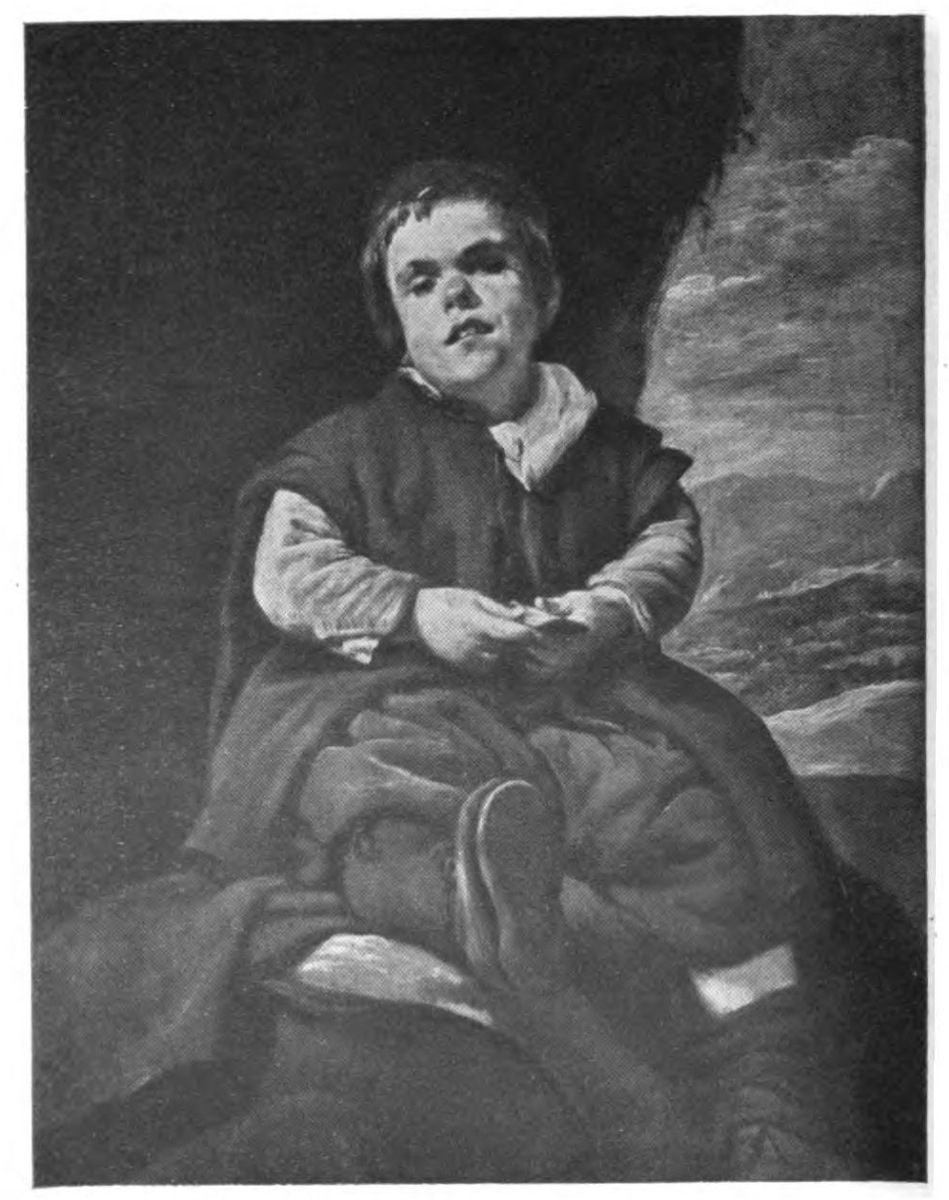 After having painted at Rome in 1650 the portrait of the Doria Pope, preceded by the bust of Juan Pareja now at Longford Castle, and the study for the portrait of the Pope which is preserved in St. Petersburg at the Hermitage, Velázquez became one of the highest functionaries of the Spanish Court. Up to his death in the month of August 1660 he superintended the decoration of the Royal Palace. His official duties, which were quite foreign to the exercise of his art contributed greatly to limit the output of the painter. However he found means to take from his numerous and exacting occupations the time to create works such as the last portraits of the Kings and the Princes which we admire so much at Madrid; the second series{27} of dwarfs, richer still and more marvellous than those that he had painted in his maturity and among which we must place the two characteristic figures of Aesop and Menippus which have nothing of the Greek and are in the last epoch of the painter’s life, what the painting of the Drunkards had been in the earlier; the two religious paintings of the Crowning of the Virgin and the Holy Hermits; the six mythological canvases, three of which perished in the burning of the Alcazar in 1734, but some of which happily remain in our national Museum, the Gods Mars and Mercury with Argus, and, in the National Gallery in London, the Venus with the Looking-glass, the attribution of which has been wrongly doubted; and finally the fine canvases of the Spinners and the Meninas the supreme monuments of a whole school, models of synthetic art, marvellous for the simplicity of their technique, the delicacy of their harmonies, and the study of values, paintings which, in spite of their modest appearance and lack of elaboration, are works of magic and sublime creations in which the painter betrays neither effort, weakness or fatigue.