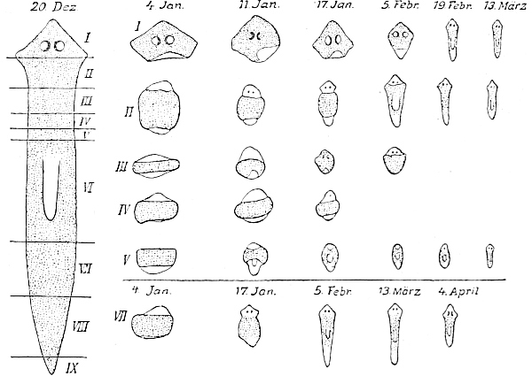 Budding and division—Every theory of regeneration in the meantime only provisional, a mere 'portmanteau theory'—Regeneration not a primary character—Volvox—Hydra—Vital affinities—Planarians—Heteromorphoses—Enemies of Hydroid-colonies—Regeneration in Plants—In Amphibians—In Earthworms—Different degrees of regenerative capacity according to the liability of the part to injury—Different results of longitudinal halving in Earthworms and in Planarians—Regeneration in Birds—The disappearance of the power of regeneration is very slow—Morgan's experiments on Hermit-crabs—Autotomy in Crustaceans and Insects—Regeneration of the lens in Triton.