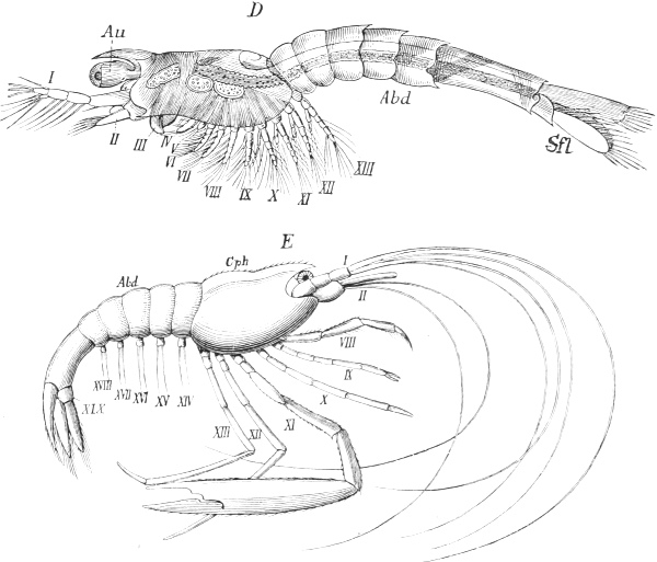| 109 D, E. | Mysis-stage and fully-formed Shrimp | 164 |