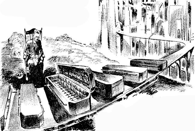"We're going to miss, I tell you," White responded desperately. He began to tremble as the delayed effects of shock started to tell, and grabbed Avery's arm to steady himself, then pulled Avery toward the shaft and into the car. "Come down and see for yourself. We're lost! Lost!"