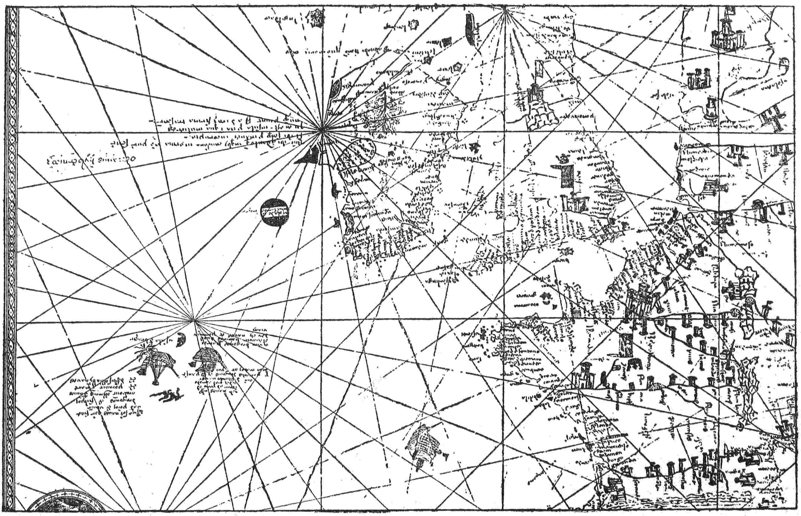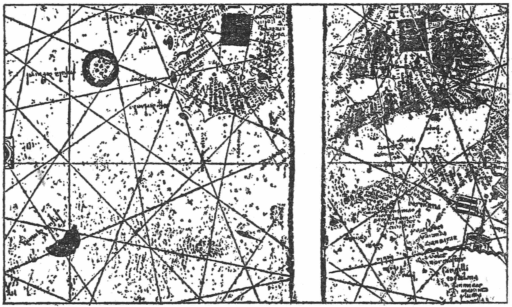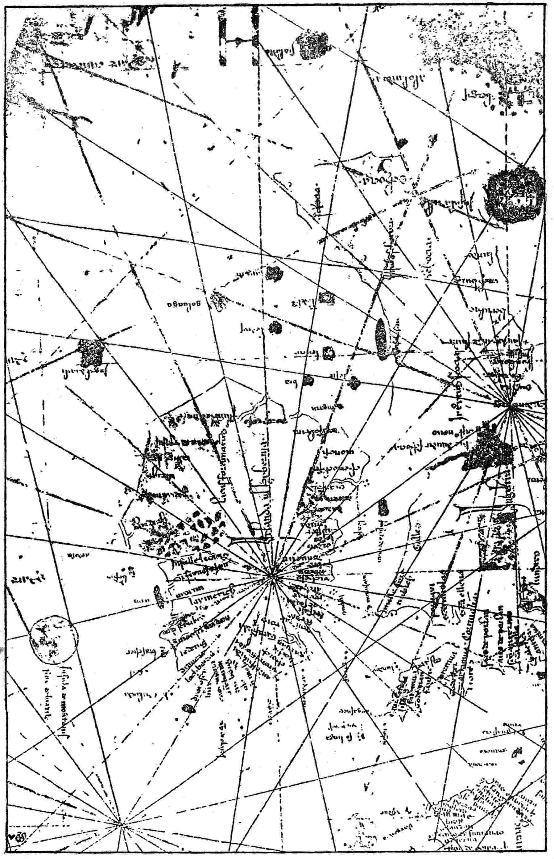 286 Gustavo Uzielli: Mappamondi, carte nautiche e portolani del medioevo e dei secoli delle grandi scoperte marittime construiti da italiani o trovati nelle biblioteche d’Italia, Part II (pp. 280–390) of “Studi Bibliografici e Biografici sulla Storia della Geografia in Italia,” published on the occasion of the Second International Geographical Congress, Paris, 1875, by the Società Geografica Italiana, Rome, 1875; reference on Pl. 8 (the second edition, Rome, 1882, does not contain the plates). Also Babcock, Early Norse Visits to North America, Pl. 4. See our Fig. 20.