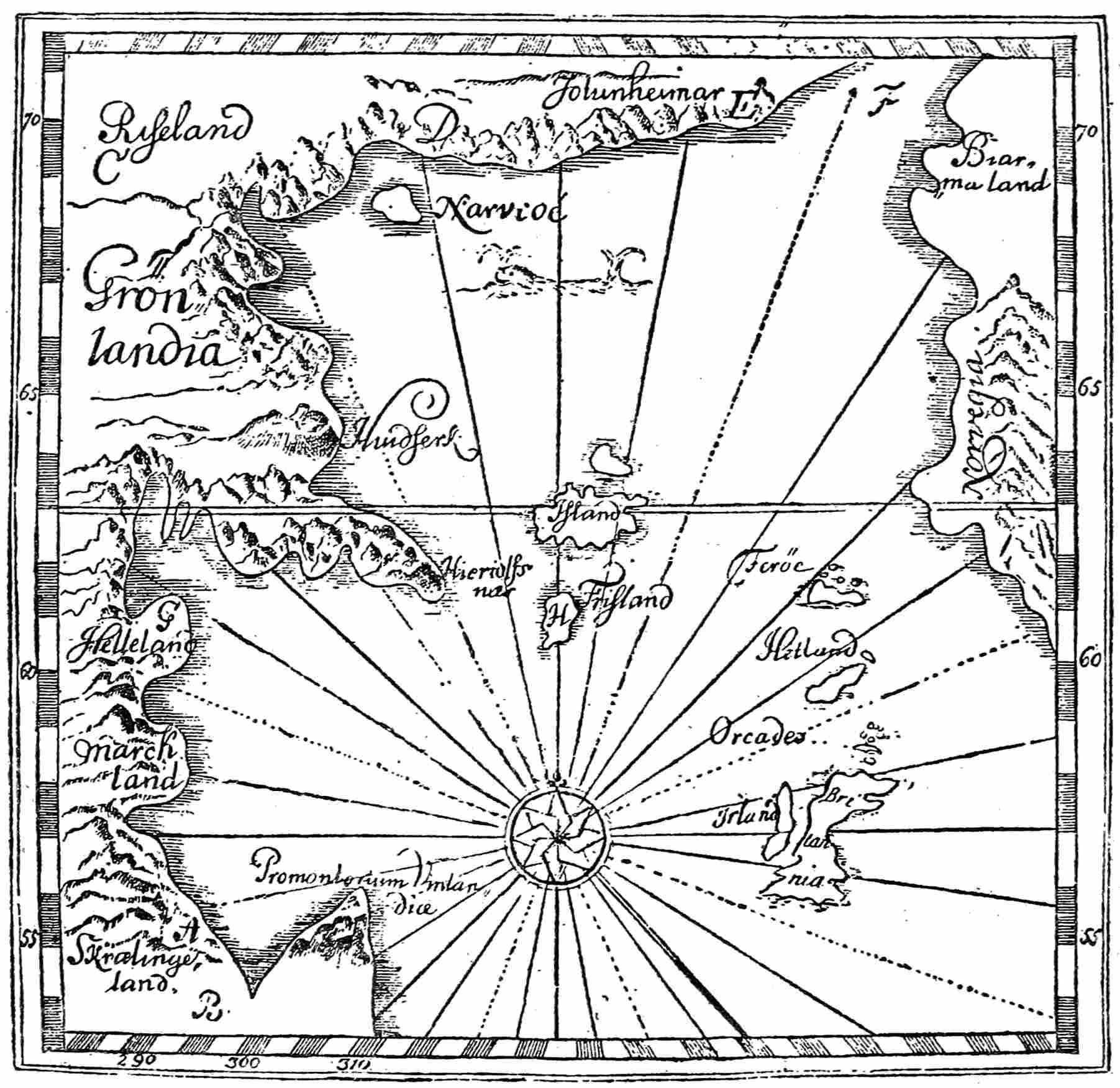 It has been alleged that two Venetian brothers, Antonio and Nicolò Zeno, in the service of an earl of the northern islands, took part with him about 1400 A. D. in certain explorations westward, he being incited thereto by the report of a fisherman, who claimed to have spent many years as a castaway and captive in regions southwest of Greenland. The Zeno narrative, dealt with later (Ch. IX), was accompanied by a map (Fig. 19), which exercised a great influence during a long period on all maps that succeeded it, adding several islands never before heard of. Both map and narrative are recognized as spurious or at best so corrupted by misunderstandings and transformed by rough treatment and a post-Columbian attempt at reconstruction as to be wholly unreliable. It is, indeed, possible that a fisherman of the Faroes made an involuntary sojourn in Newfoundland and elsewhere in America from about 1375 or 1380 onward and that his story induced the ruler of certain northern islands to sail westward and investigate. But both features are very dubious, and at any rate nothing was accomplished except the confusion of geography.