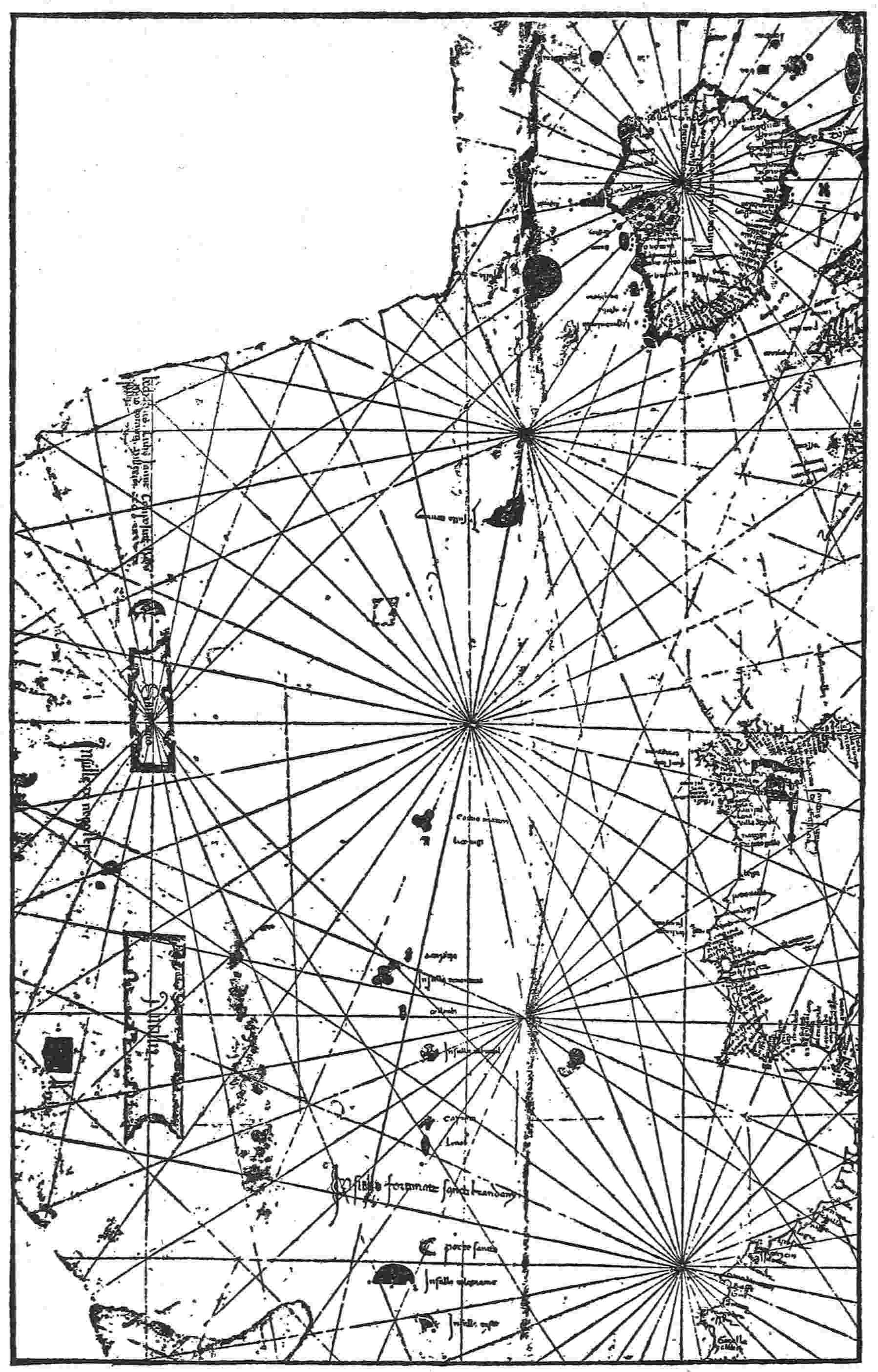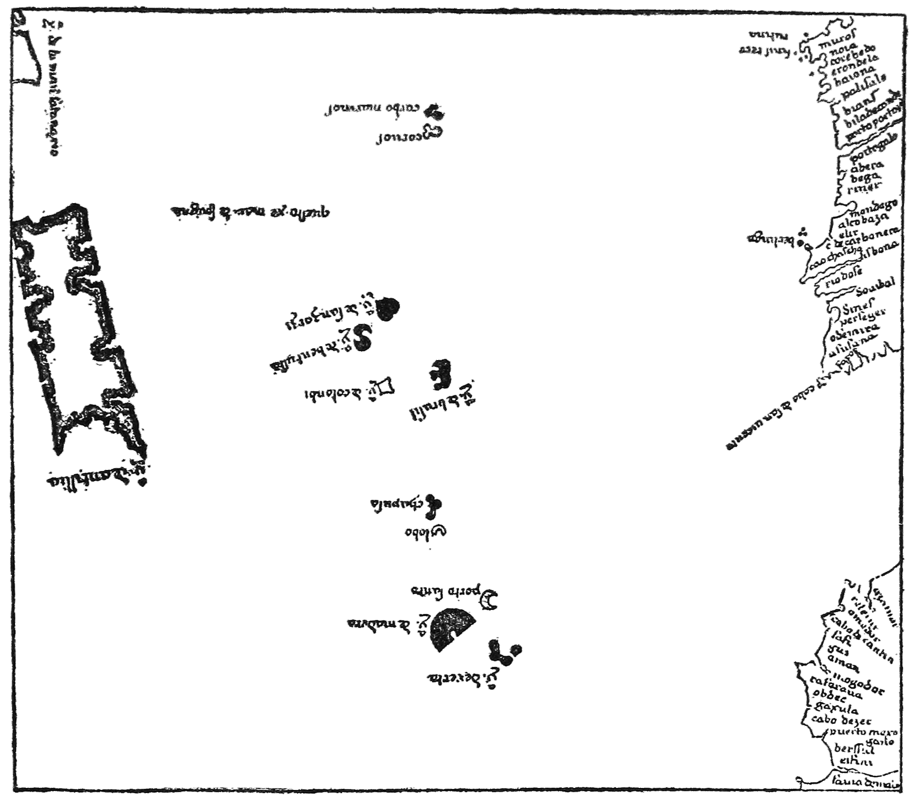 This brings us down to the rise of Portuguese nautical endeavor, which seems to have begun earlier than has generally been supposed but became most conspicuous under the direction of Prince Henry the Navigator. Its achievements included the rediscovery of Madeira and the Azores, which in many quarters had been forgotten, the exploration of the African coast, the accidental discovery or rediscovery of South American Brazil by Cabral, and the voyage of Vasco da Gama to India around the Cape of Good Hope. Perhaps we might insert in the list the discovery of Antillia. At any rate, it got on the map with a10 Portuguese name in the first half of the fifteenth century, and several other islands accompanied it. They all certainly seem to be American and West Indian.