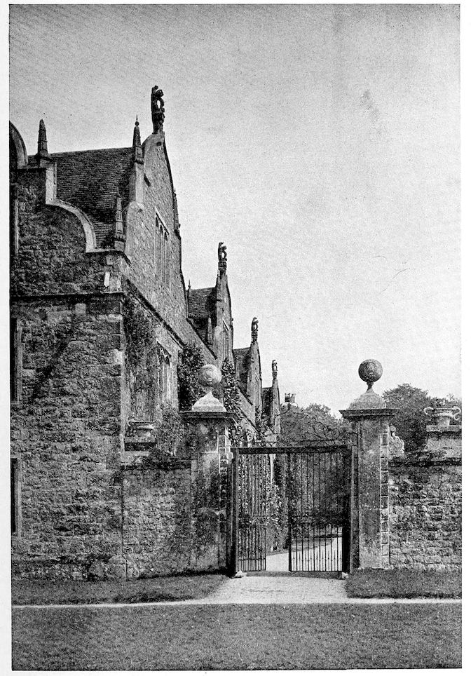 A stone lobby under the oriel window divides the Green Court from the Stone Court. In summer the great oak doors of this second gate-house are left open, and it has sometimes happened that I have found a stag in the banqueting hall, puzzled but still dignified, strayed in from the park since no barrier checked him.