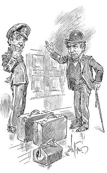 As soon as I disclosed my European intentions, I began to get advice from friends and old travelers. This is a trying experience. Everybody has ideas as to what should be done, and no two will agree. One of the first questions to be settled is that of clothing. The importance of this is impressed upon the prospective tourist. In the first place I am told to take no baggage except the very simplest that can be carried in the hand. In the second place I am advised that when traveling in Europe, even more than in this country, one should be prepared for all kinds of climate and be ready with the proper clothes to meet every emergency. Every bit of information is absolutely as true as common law or the gospel, for the informant has either made the trip, or his wife’s cousin has, or he knows a man who knows another man who did,—and you are told what happened with all the harrowing details. Clothes do not make the man or the woman, but they help out a lot. So that our friends will realize[13] the difficulties we may meet. I will admit that we are going to the “simple” extreme, taking only light baggage, very little more than a clean collar and a pleasant smile. If royalty wants to call upon us, royalty will not find us prepared with the clothes required by the books of etiquette, unless I can hire a dress suit or borrow one from the head waiter.