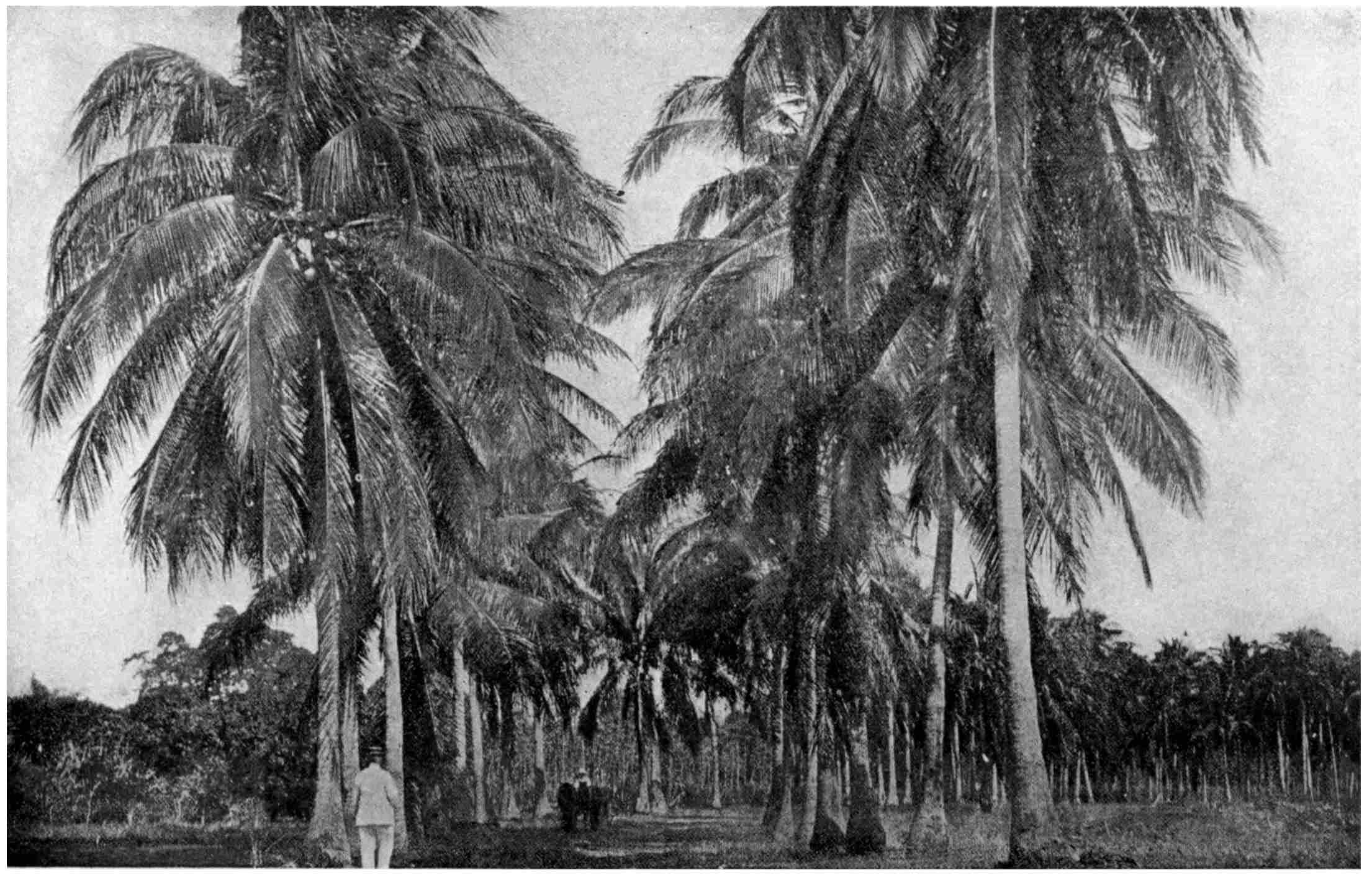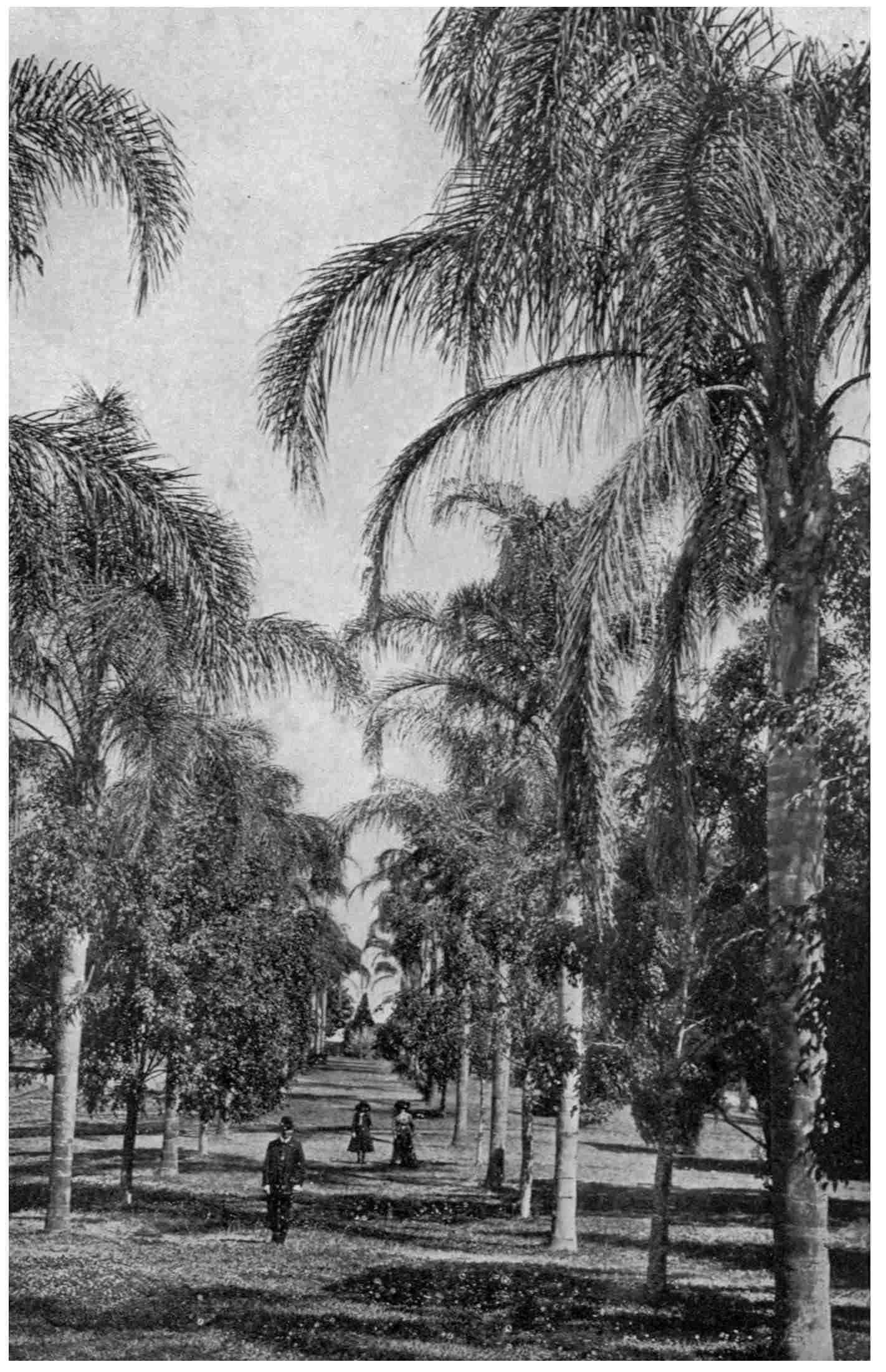 It was just at the end of the dry season when we were there, and as we drove along between eucalyptus and coco palms, and all kinds of unfamiliar tropical plants, their vivid green contrasted oddly with the absolutely bare red soil—there was not a blade of grass or green upon it. This is its normal condition in the dry season, which occurs with perfect regularity from May to October. The rains are ushered in by violent thunderstorms and hurricanes, increasing in frequency till the end of November, when about an inch of rain falls nearly every day. In January the wet season has penetrated to the heart of the continent.