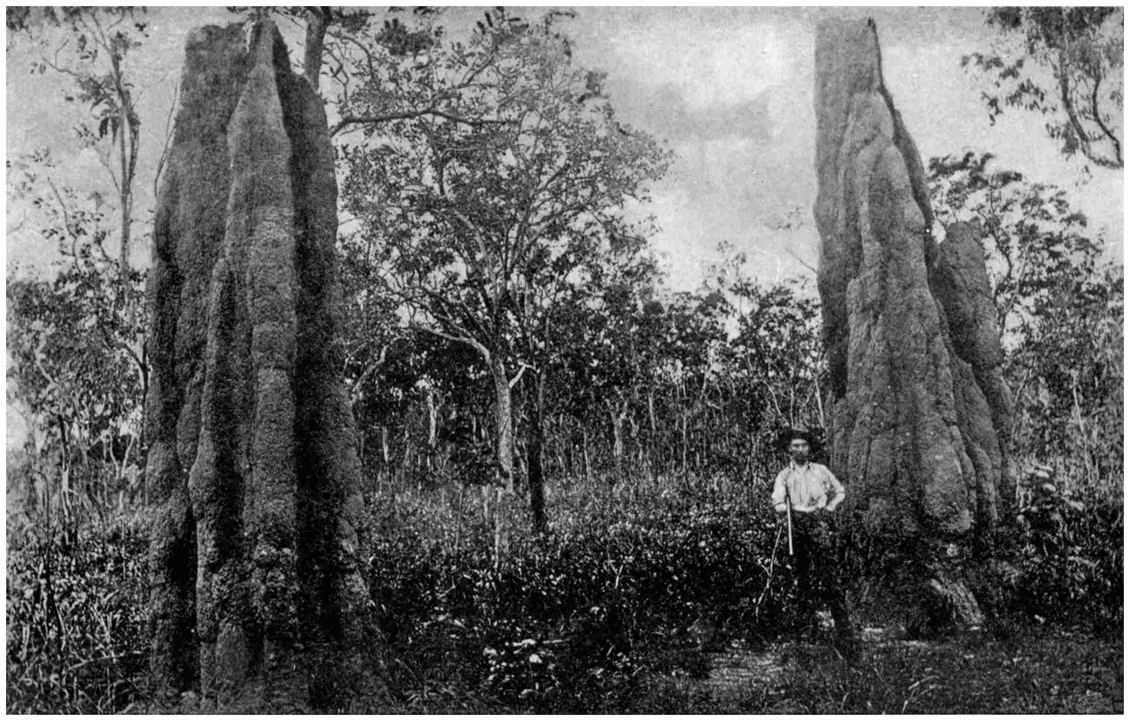 The stars were brilliant, the Southern Cross pointing our way as it hung just above the dark roof of the house. At the entrance to the garden was a banyan tree, and there were green ants’ nests among the leaves of the other trees, neatly sewn up like long, narrow bags, and green ants with red legs were running about everywhere, even on the window-sills. We sat on the verandah, and were given buffalo tongue sandwiches, which291 have an agreeable, esoteric flavour, quite incomparable to anything else. It was all very pretty and comfortable, despite the absence of servants. The Port Darwin housewife has to wage an active and unceasing warfare against insect pests. Food cannot be left on the table for a short time without ants swarming on it. Large cockroaches three or four inches long lurk behind furniture; the destructive silver fish conceal themselves in unopened drawers, and mosquitoes make life a continual irritation, unless ceaseless precautions are taken. Still, active vigilance will reduce all these pests to a minimum.