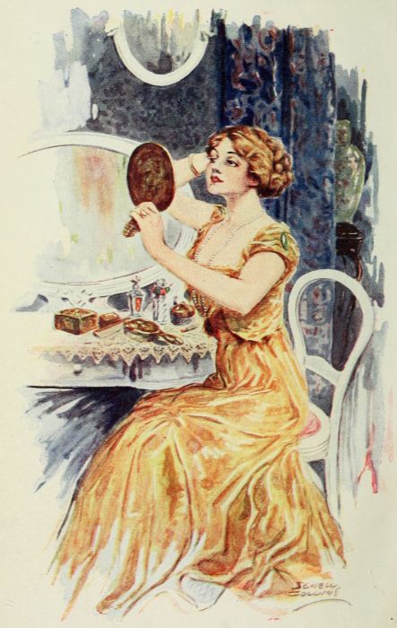 Un soir, vers la fin de mars, Hélène s’habillait pour l’Opéra. Vêtue d’une robe d’un jaune très doux, dont le décolleté laissait voir toute la perfection de ses épaules, elle était assise devant son miroir. Pendant qu’elle refrisait avec soin, elle-même, quelques mèches folles, une seconde figure se refléta dans la glace, celle d’un homme de haute taille, aux cheveux noirs, aux yeux bleus.