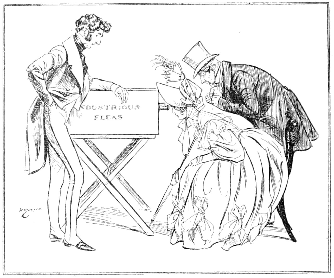 The swindler, however, who trusts to his unassisted genius, and disdains the lustre of any specious trophies from the churchyard, may with a very laudable pride refuse to make to himself a grandfather, being possibly contented with the grandsire selected by his grandmother for him. Some men—and let me do all homage to their simplicity—turn up their noses at the genealogical tree, even though its roots were struck at Tyburn: the swindler of sanguine spirit may be of this proud kidney; and all the better: I augur more of his ultimate triumph. However, though he shall refuse a herald-begotten progenitor, it may be highly necessary for him that he shall choose a name. His own may have become celebrated for family achievements wide away of his purpose; and therefore, whilst with filial affection he sticks to his own father and mother, disdaining the blood of Norman, Guelph, or Ghibelline—it may be imperative upon him to assume a nominal device not hitherto borne by any of his kin. The swindler wants a name. Here, then, we approach a delicate, yes, a difficult point. Let me, however, set out with a solemn injunction to the swindler, that in the choice of a name “he throw away ambition.” Considerable nicety is required in the selection of a good title for swindling; a number of fine young fellows having—if I may lighten the solemnity of this essay with a familiar phrase—“let the cat out of the bag” by the incautious assumption of a high-sounding, 245flowery, no-meaning patronymic. The truth is, the detestable rage for novels has so familiarised the world with a set of sugar-and-water heroes—of exquisite gentlemen, all of them worthy of a glass case lest the flies should soil them—that their very excess of virtue has put them on the hue and cry of suspicion. Hence “Delacour,” “Erpingham,” “Rosenthorp,” “Millefleur,” and a thousand others of the courtly and sweet-smelling class, all in their time excellent names for swindling (that is, for swindling in the higher sense of the term, for in “fine wire wove” they swindle still), are now no other than brands, stigmata, by which the calling of the professor is instantly suspected. Hence, my dear pupil, take no sweet, pastry-cook name from a novel; cull no flower from a play-bill; but look, as either a poet or a member of Parliament says, I forget which, “look abroad into universality” for the thing desired. As you walk the street cast your eyes above the door of the worthy shopkeeper. A thousand to one that in a day’s saunter you will possess yourself, and from such a source, of a name in every respect unexceptionable. Yes, from the board of the thriving, honest, painstaking, till-respecting tradesman. And if so, how ingenious, how pleasant withal, to obtain one of your best weapons from, so to speak, the armoury of the enemy, to be fleshed immediately upon him! It is perhaps unnecessary to warn the young swindler that he must not be too homely in his choice. There is a class of names which, from their very abundance, makes it a matter of constructive ignominy to swindle under them. And some of these are Jones, Walsh, Welsh, Thomson, Johnson, Dobson, White, Brown, Williams, Simpson, Smithson, and that multitudinous monosyllable, Smith! If, in a moment of hilarity you break a lamp, wrench off a knocker, or snap a bell wire, why any one of these names may be, as of course every gentleman well knows, confidently given in to the night constable; but to attempt to swindle under them betrays a 246petty larceny spirit in the professor, from which my experience looks for little present gain or future reputation. No; the name of a swindler should be like the wardrobe of the true gentleman—a thing not challenging vulgar attention; but, if examined, found to be of the very best material and of the choicest workmanship. Hence let the swindler choose between a clinquant (I do believe this is almost the first bit of French appearing in the essay, for the which I confess myself deficient in the graces of modern literature[16]), between the clinquant of novel heroes and the homeliness of “base mechanics”—let his name be a solid, substantial, downright English name.
