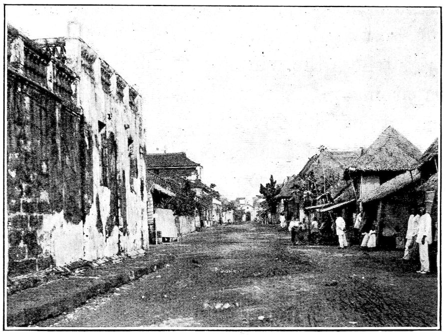 In the cities of Europe and America there are great sewer systems to take the waste and refuse from the houses and carry it far from the city. The sewers empty into the sea or into drainage canals, and thence to points where the sewage can be destroyed so that it will not endanger life. The city of Manila has some sewers. We can see the openings into them in the streets. They are small, square openings, covered with stone. But the sewers that run through the streets empty into the open moat that surrounds the walled city! It will become necessary, before many years, to fill this 86moat, to save the people of Manila from being killed by the gases that rise from it.