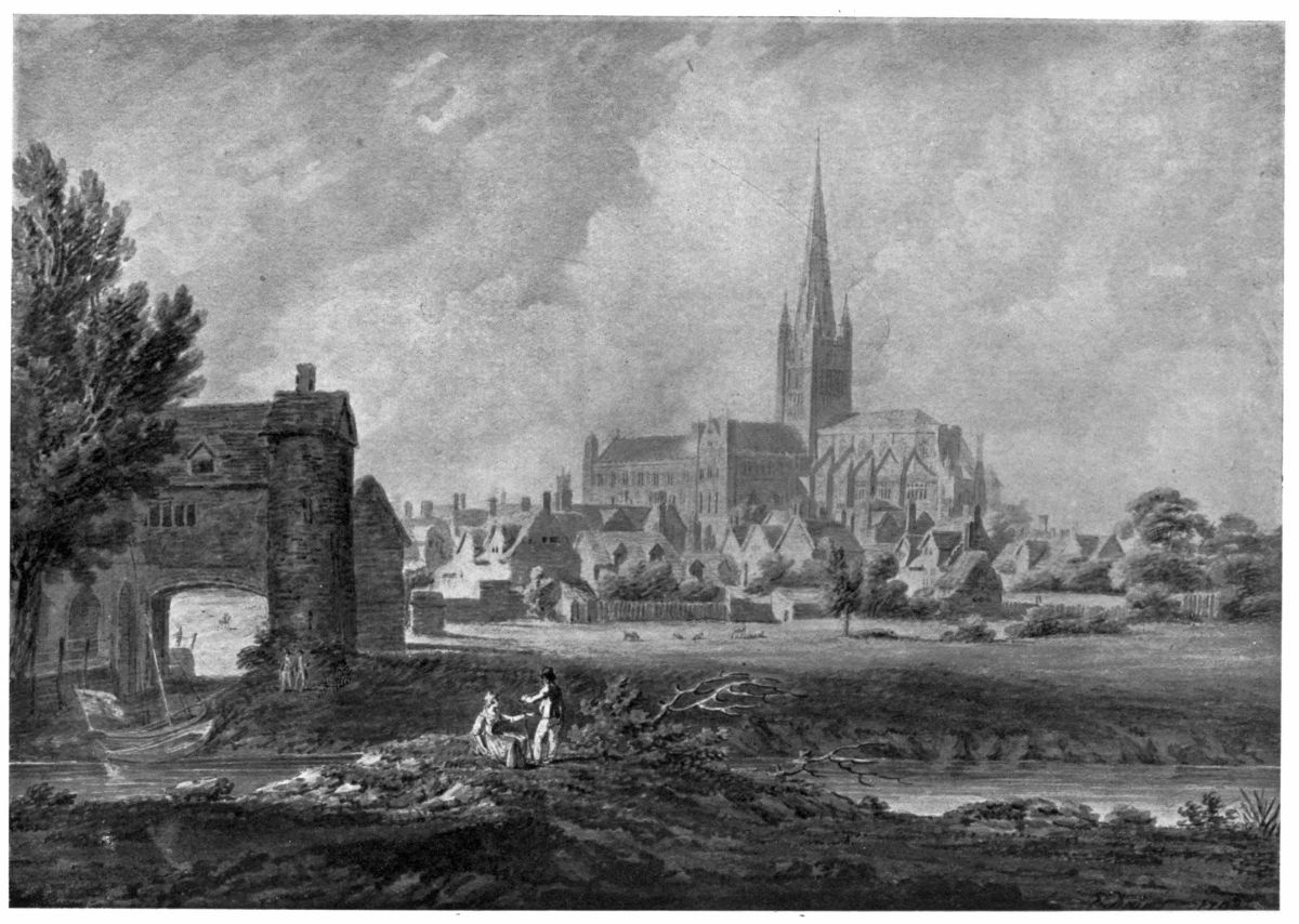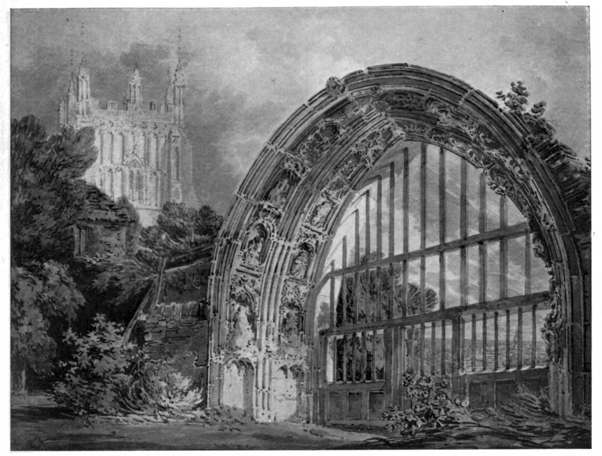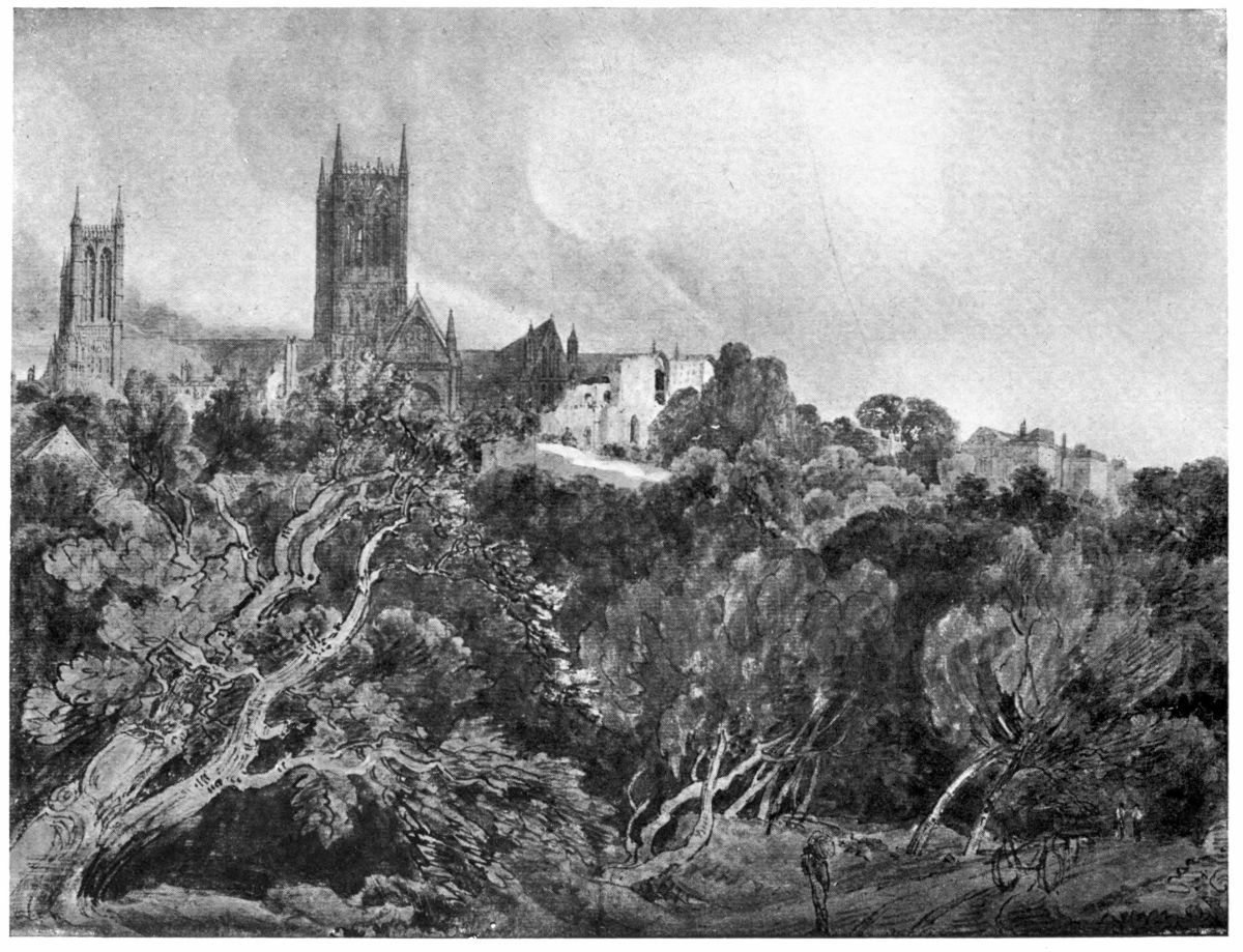 These two subjects were sketched during the summer of 1792, when Turner was seventeen years of age. He was then a student at the Royal Academy schools, where he attended the life class diligently during the winter and spring months. In the early part of the summer of 1792, he went to Bristol to visit his uncle’s friends, the Narraways, and went from there to South Wales, Hereford, Great Malvern, Worcester, Evesham, Tewkesbury and Gloucester. Several of the pencil drawings made during this tour were exhibited some years ago at Mr. Walker’s gallery in Bond Street.