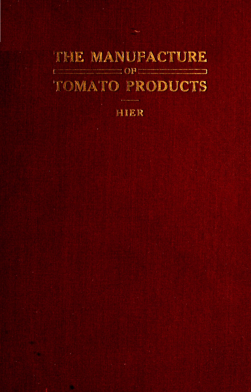 In writing the text I have had to rely almost entirely on the experience gained during the seven years in which I have been engaged in the manufacture of these products, as there are no books on the subject, and no sources of reference except the bulletins prepared by Mr. B. J. Howard and Mr. C. H. Stephenson of the Bureau of Chemistry, U. S. Department of Agriculture, on the sorting and washing of tomatoes, the handling of tomato trimmings, and the effect of proper and improper sorting and washing on the content of micro-organisms as determined by microscopical examination.