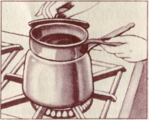 (1) Pour milk in saucepan; drop in chocolate