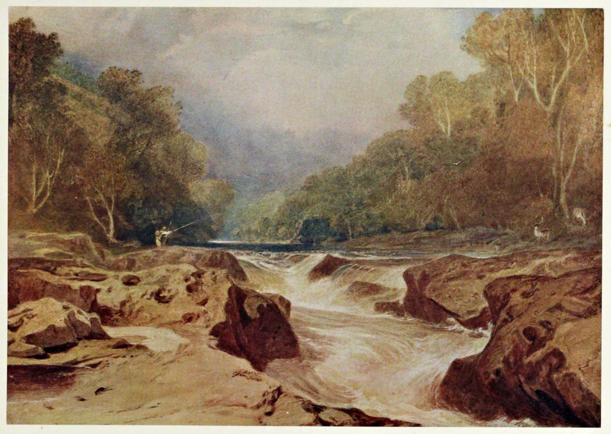 In 1814 Turner was, I believe, too busy sketching the southern coast from Hastings to Margate, and his “Views in Sussex”, to have much time for any lengthy visit to Farnley. But he was certainly there in 1815, as a passage in a letter to the Rev. H. Scott Trimmer proves. The letter is given in full in Monkhouse’s “Turner” (p. 90). It is dated “Tuesday, Aug. 1, 1815.” In it Turner says: “After next Tuesday—if you have a moment’s time to spare, a line will reach me at Farnley Hall, near Otley, Yorkshire, and for some time, as Mr. Fawkes talks of keeping me in the north by a trip to the Lakes, &c., until November.” The evidence of the sketch-books suggests that this trip to the Lakes did not take place.