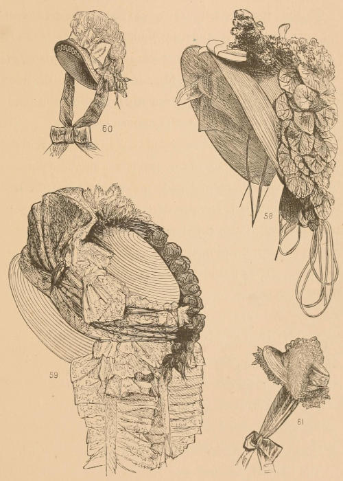 On the opposite page (Fig. 58) is an illustration of the very latest Paris bonnet by Madame Magnièr.