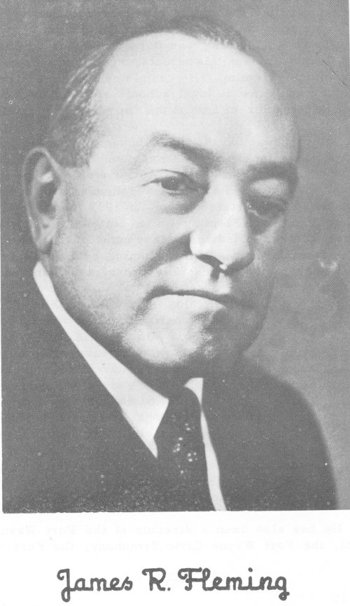 James R. Fleming was born November 8, 1881, in Henry County, Indiana; his parents were George R. and Sarah (Cummins) Fleming. He completed his elementary and secondary education in local schools and was awarded the degree of Bachelor of Law at the University of Michigan in 1904.
