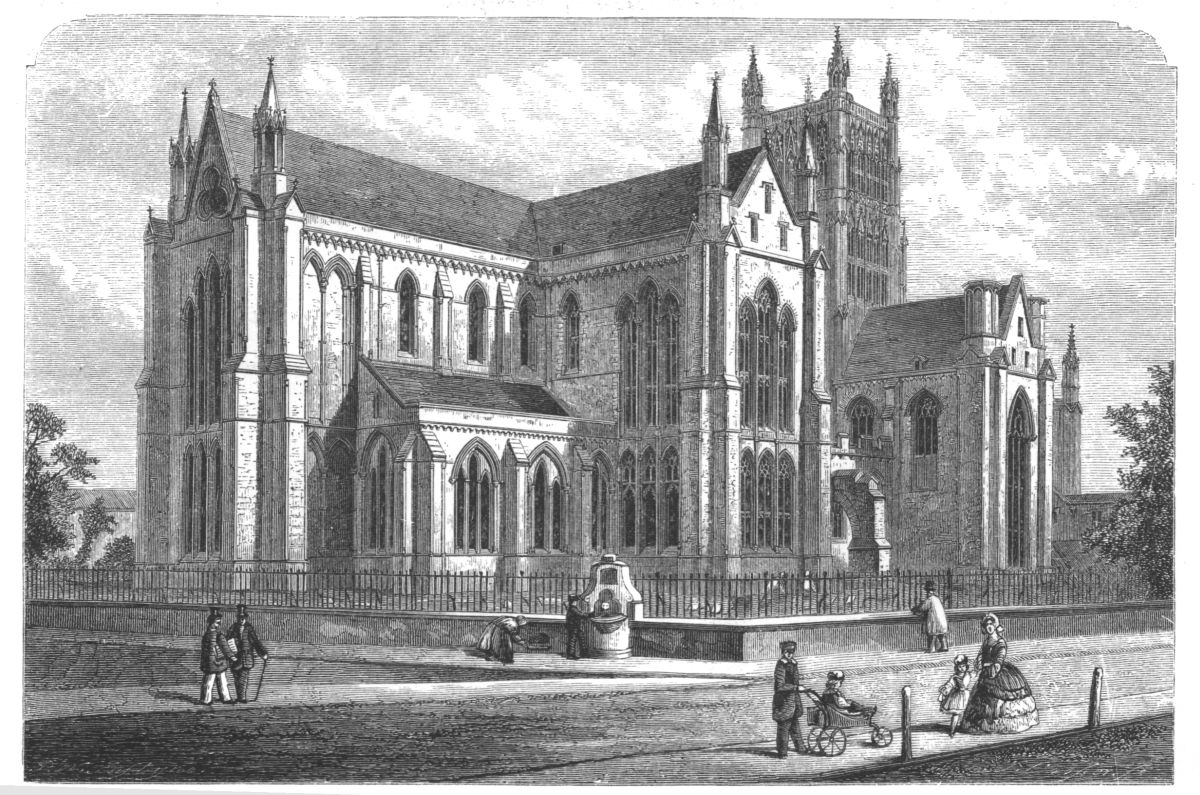 Notwithstanding the long siege of the city, Gloucester Cathedral suffered but little during the Civil War. Within the last ten years (1853-1863) extensive restorations have been made within and without the cathedral, under the superintendence of Mr. F. S. Waller. These consist chiefly of the clearing and drain{6}ing of the crypt; the restoration of the west front, the south aisle of the nave, the chapter-room, the library and sacristies, portions of the cloisters, the whole of the east end of the choir, and the interior of the nave: to which must be added the alterations entailed in forming and laying out the grounds round nearly the whole of the cathedral; several houses and yards having been removed, and hundreds of loads of soil, the accumulation of years, taken away from against the walls.